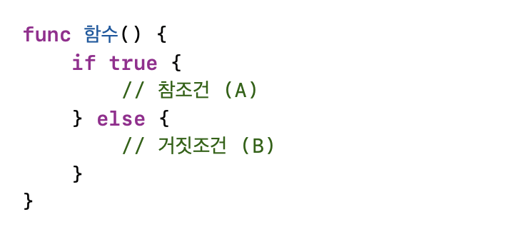 Swift에선 '조건이 맞다면'을 true로, '조건이 맞지 않다면'을 false로 생각합니다. 여기서 true/false는 참/거짓을 판별할 수 있는 Boolean 데이터 타입입니다. 데이터 타입은 조금 뒤에 다뤄보겠습니다.
