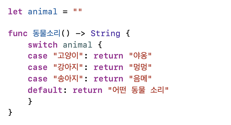 animal이 강아지라면 "멍멍"을 출력하고 함수가 조건문이 종료될 것입니다.