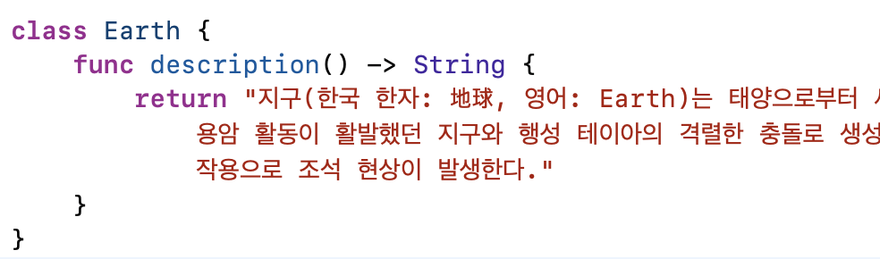 지구에 대한 설명을 담당하는 지구 클래스가 있다고 가정하겠습니다.