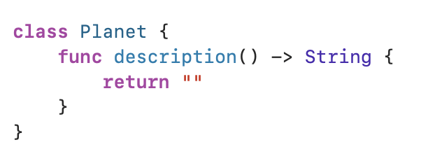 확인해 보려고 했는데 description 함수가 없습니다. 이유는 Planet class엔 description 함수가 없기 때문입니다.