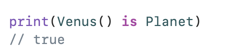 바로 earth is planet 이기 때문이죠. 상속 관계는 객체 간의 is 관계가 성립되는데요. 실제로 타입을 비교할 수 있는 is를 사용해서 확인이 가능합니다.