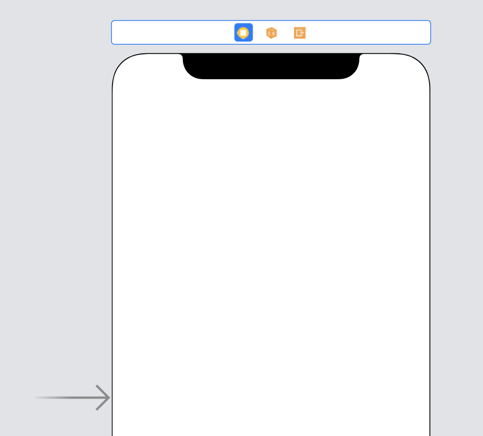 이 화살표가 의미하는 것은 Initial View Controller입니다. 즉, 어떤 스토리보드가 시작될 때 첫 번째 화면을 가리키고 있는 것입니다.