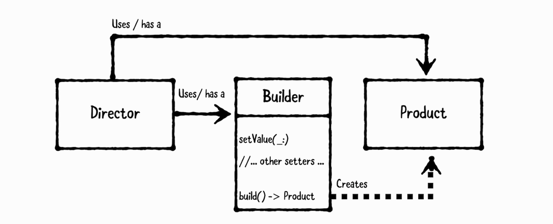 Builder객체는 build() 함수를 통해 Product를 생성합니다 (두 객체가 dependency 관계인 이유입니다.)