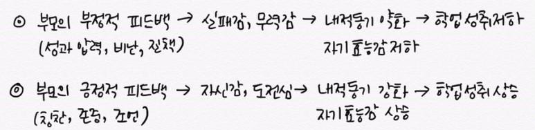 자기효능감(self-efficacy): 자신이 어떤 일을 성공적으로 수행할 수 있는 능력을 가지고 있다는 믿음과 신념