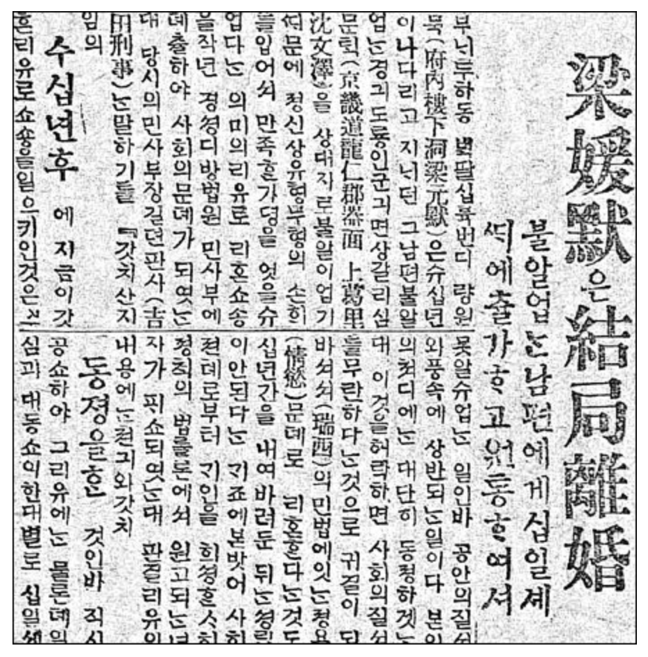 우리나라의 경우도 마찬가지입니다. 과거에는 부모의 강권으로 결혼을 해야만 했습니다. 게다가 유교적 규범이 지배하던 시절에 남성은 아내가 칠거지악을 범했다는 이유로 쫓아낼 수 있었지만, 아내가 먼저 이혼을 제기하는 것은 범죄처럼 취급했다고 합니다. 그러다가 1908년 재판이혼이 허용되면서 이혼소송이 급증했고 원고의 90%이상은 여성이었다고 합니다.