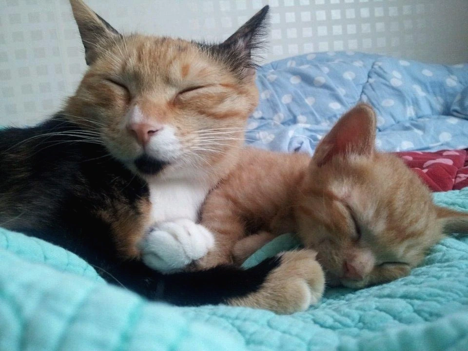 츠동이와 엄마냥이. 피는 못 속이는 걸까. 성묘가 된 츠동이와 얼굴이 똑 닮았다.