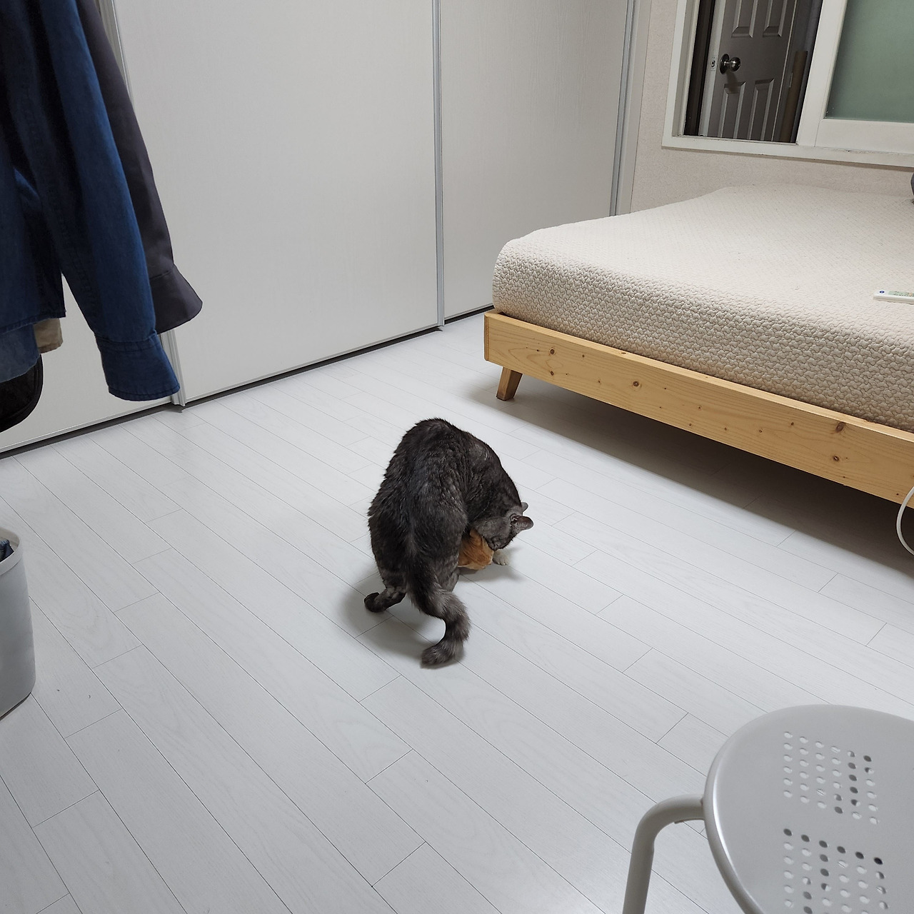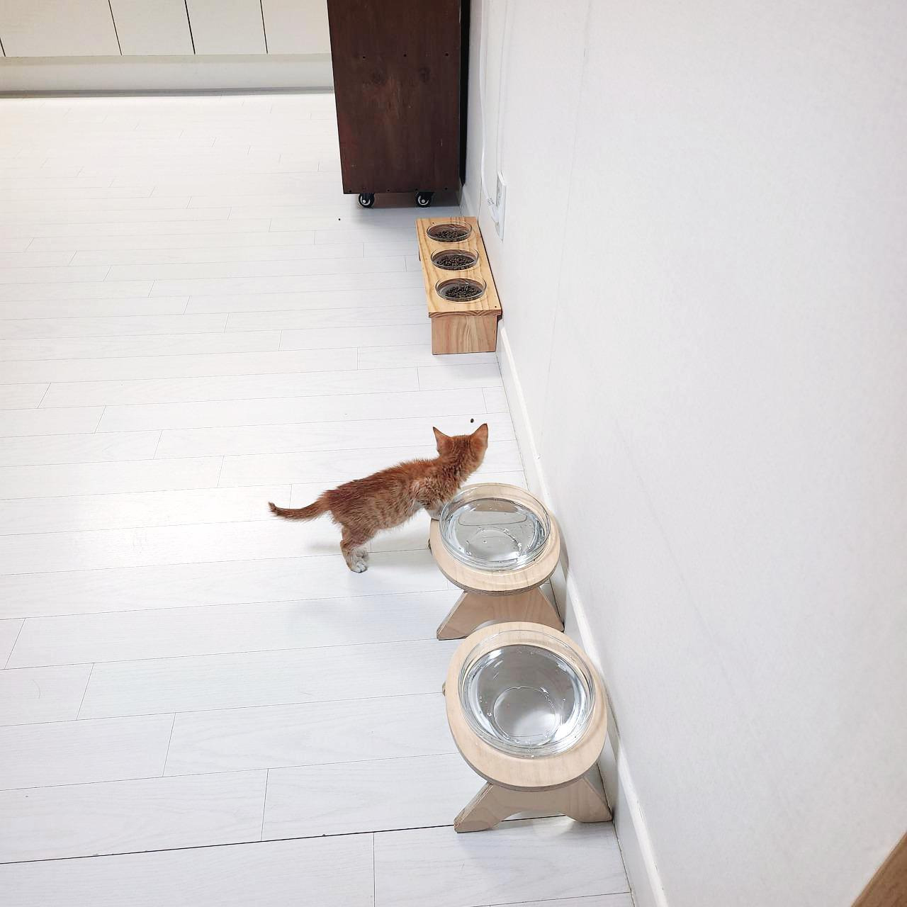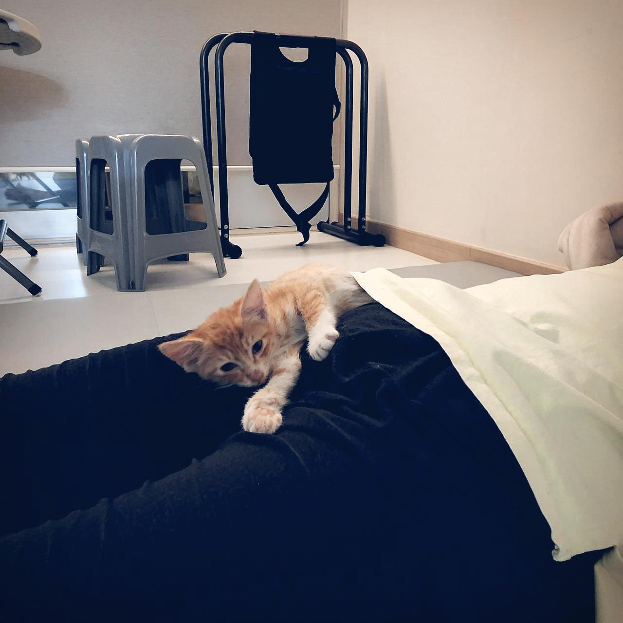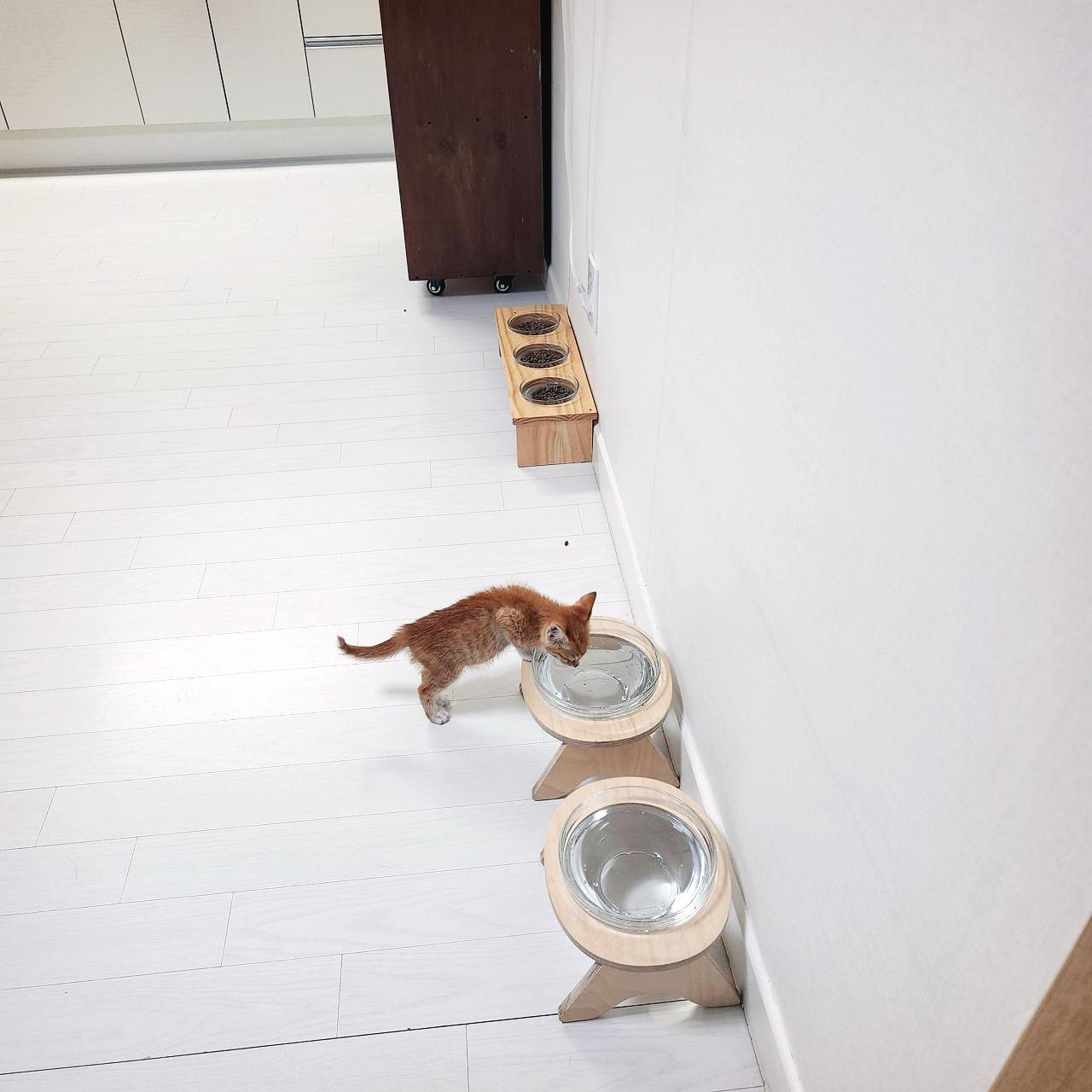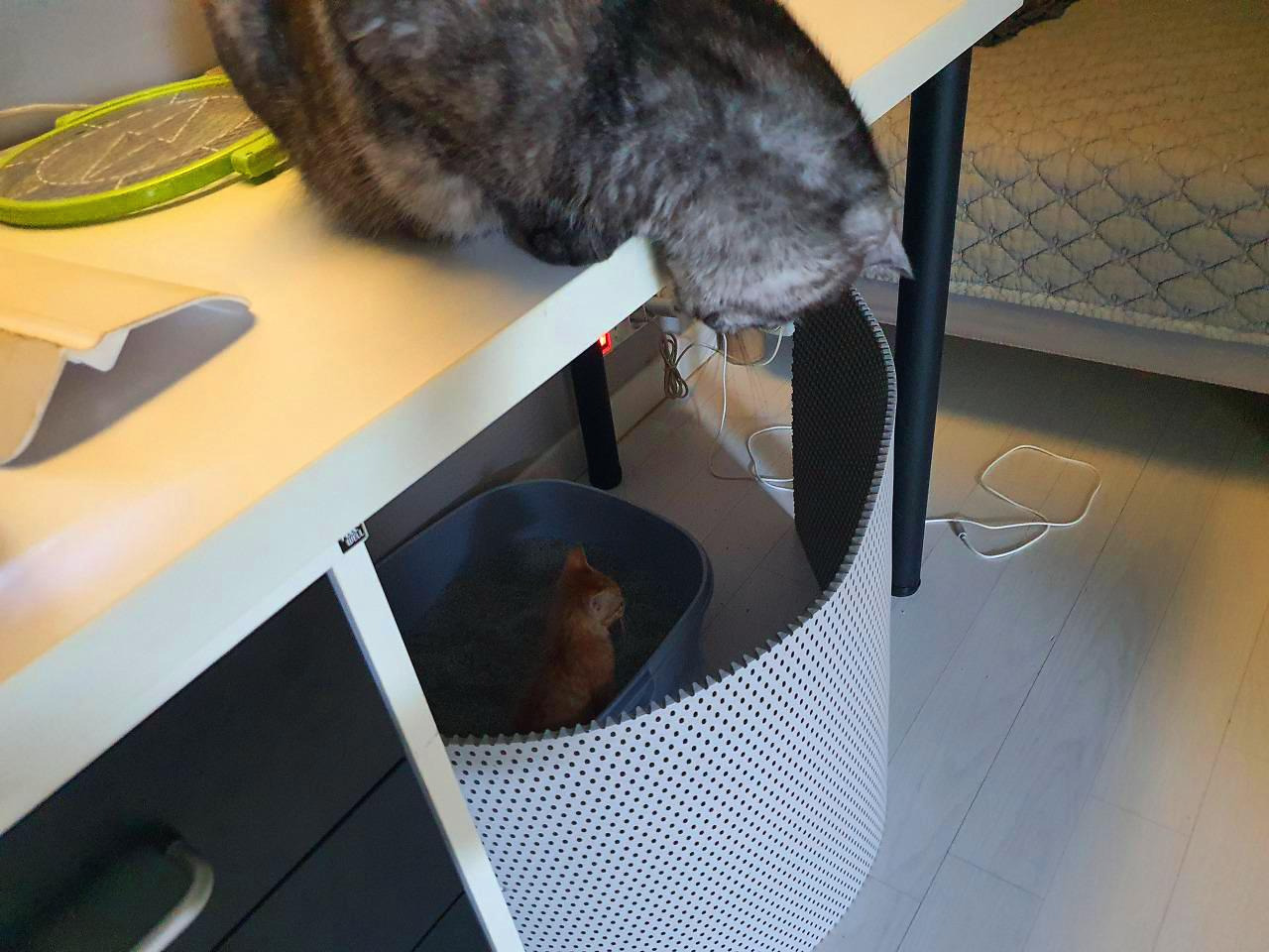그런데 츠동이와 구로의 얘기도 좀 들어 봐야 한다. 루비와 사정이 좀 다르다. 작은 꼬물이가 성가시면 얼마나 성가시다고 요 까칠이들이 냉장고와 캣타워 위에서 내려올 생각을 하지 않는다. 께동이를 격리하면 귀신 같이 알고는 그제야 방을 돌아다닌다. 안 내려오는 건 자유지만 밥이랑 물은 제때 먹고 있는지 걱정이 된다. 더 친해질 수 있도록 뭔가 조치가 필요했다.