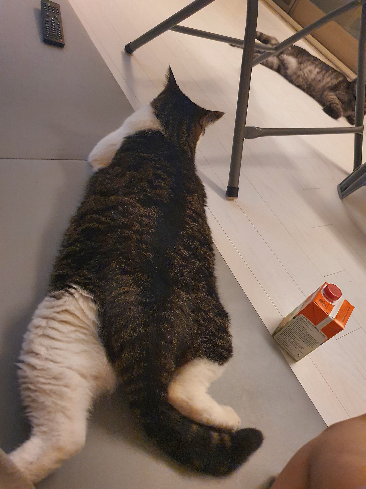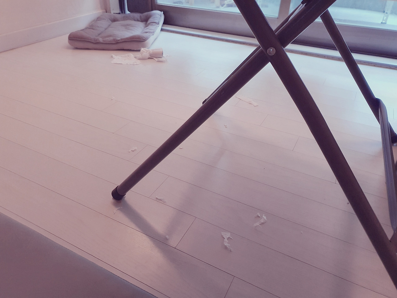 글을 마무리하는 시점에 바닥에 심상치 않은 검은 얼룩들이 보였다. 불안한 느낌은 틀리는 법이 없다. 냄새를 맡아 보니 생각했던 그것이 맞다. 누구일까. 가뜩이나 혼자 병마와 힘들게 싸우고 있는 집사를 더 고통스럽게 만드는 이 누구일까. 제 기능도 하지 못하는 코로 세상모르게 자고 있는 녀석들의 발 냄새를 하나씩 맡았다. 이 놈들은 사족 보행이니 한 녀석당 네 번의 킁킁, 도합 열여섯 번의 킁킁.