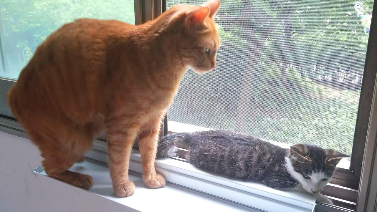| 냥이들의 일광욕을 위한 베란다 창틀 선반 | "제발 창틀로는 가지 말아 줄래?"
