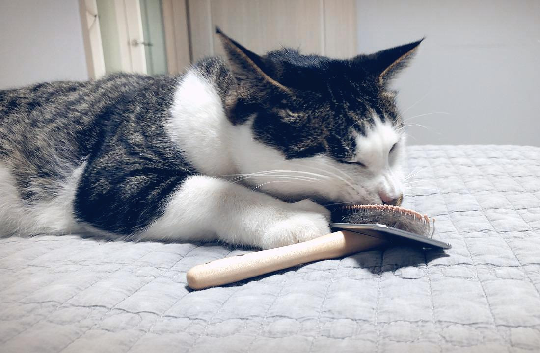 냥이가 싫어하지 않는다면 빗질도 가끔 해 주는 것이 좋다. 그루밍을 해 줄 수는 없으니까. 마사지 효과는 물론 죽은 털을 제거해 헤어볼도 감소시키므로 일석이조다. 겁쟁이 구로도 유일하게 과감해지는 때가 빗질 시간이다. 소파에 누워 핸드폰으로 무언가를 하고 있으면, 갑자기 배 위로 올라와 큰 머리를 들이밀며 빗질을 해달라고 애교를 부린다. 가뜩이나 힘도 센 구로의 박치기 공격 때문에 얼굴에 핸드폰을 떨어뜨리는 일도 다반사다. 귀여워서 봐준다. 빗질을 시작하면 온 집 안을 가득 메우는 구로의 골골이가 시작된다.