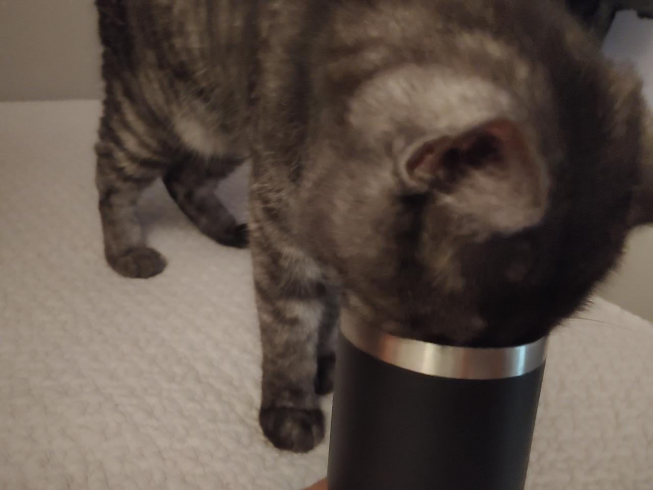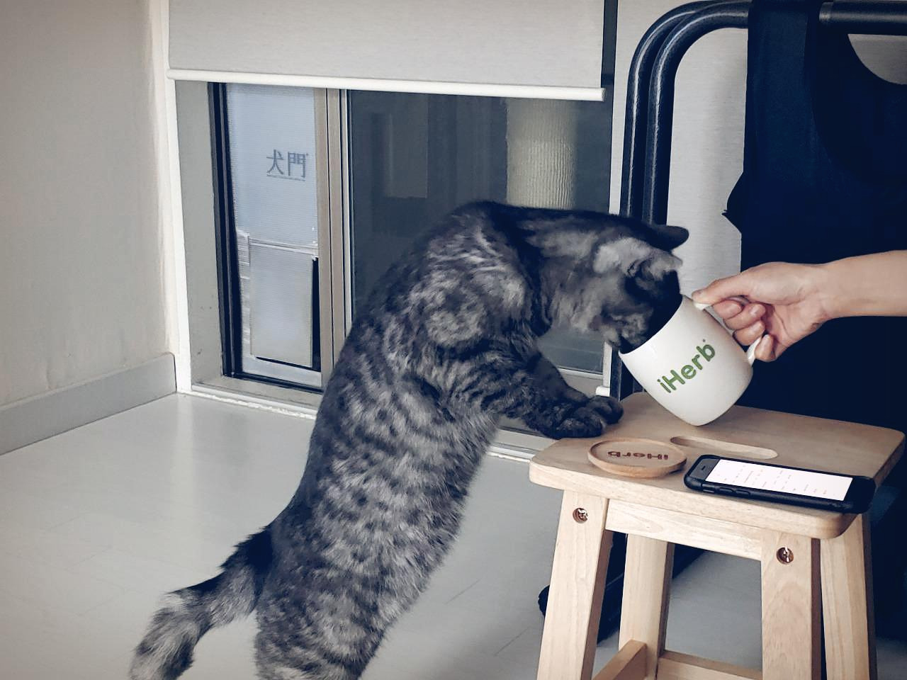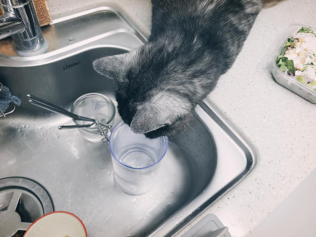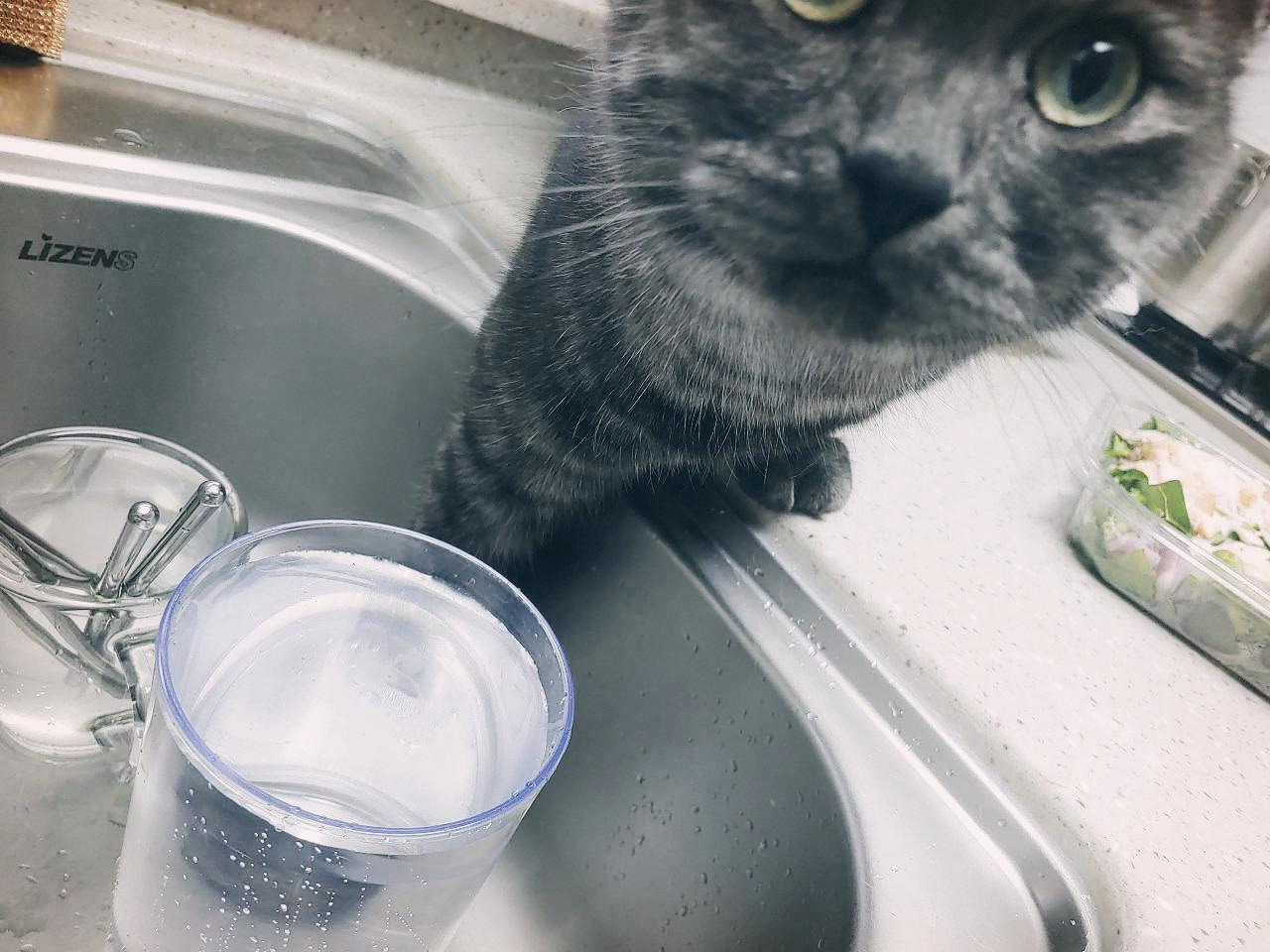 싱크대에서 음수 중인 루비. 요새는 츠동이도 루비를 따라 싱크대에서 물을 마시기 시작했다.