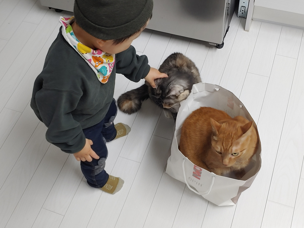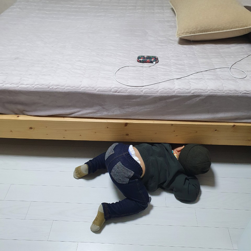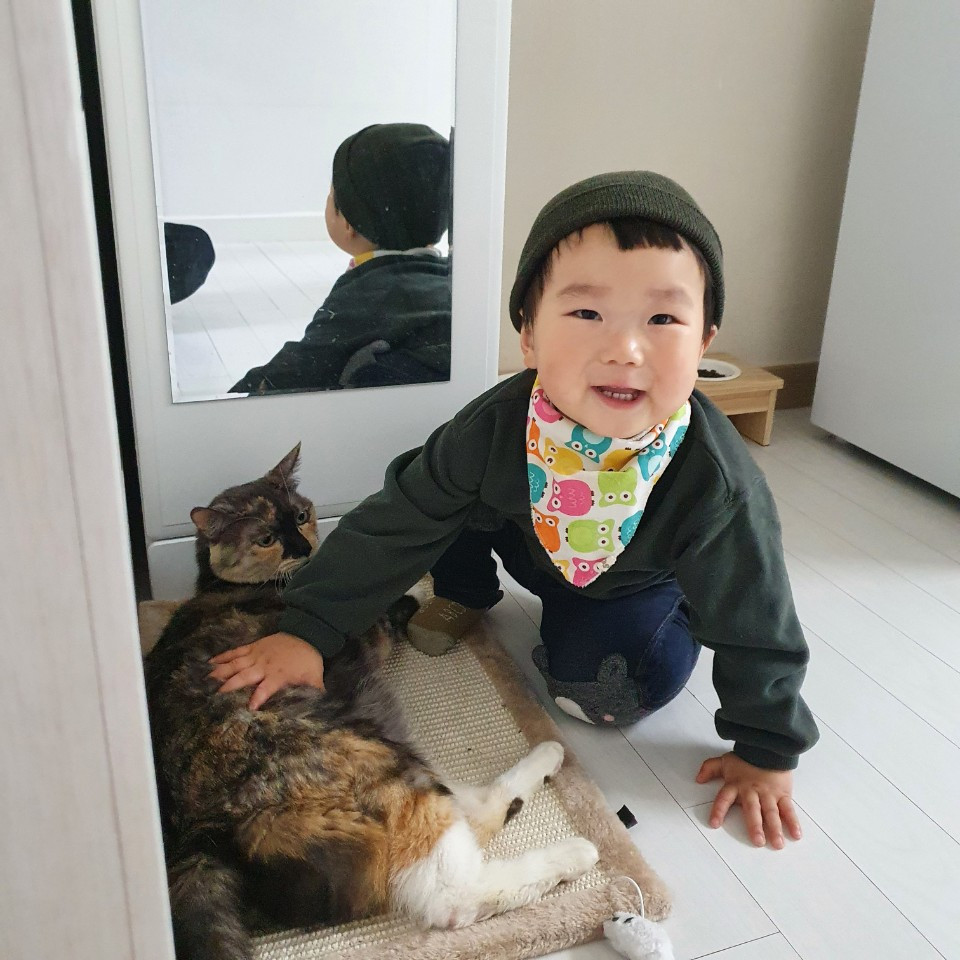 마끼와 놀고 있는 친조카. 두 살배기 조카는 집에 오면 고양이부터 찾는데, 항상 멍멍이라고 한다. 야옹이라고 가르쳐 주는 건 포기하기로 했다.
