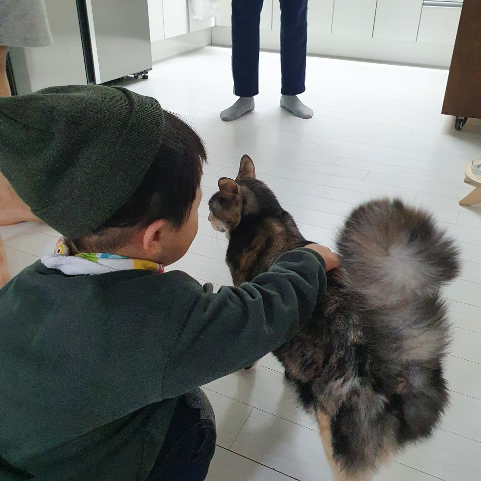 지금이야 친구들도 고양이가 익숙해져서 궁디팡팡도 아주 자연스럽고 다가가기 전에 냄새를 맡을 수 있게 손부터 주지만, 처음에는 고양이 데리고 산책 나가 봐도 되냐는 친구들도 더러 있었다. 옆에 있는 줄도 몰랐던 고양이가 다리에서 갑자기 물컹하게 느껴져서 놀라 자빠지는 것은 예사다. 때로는 식탁 위로 펄쩍 뛰어오르는 녀석들 때문에 아주 기겁을 하기도 했다. 냥이들이 기척을 거의 내지 않고 다가오는 탓이다. 고양이로 인해 벌어진 사건들은 이것 말고도 아주 많지만 이 한 편에 다 풀어낼 수는 없을 것 같다.