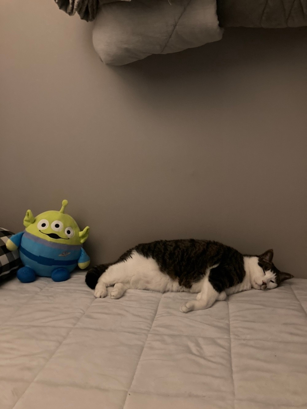 이렇게 셋째 동생 구로의 소개를 마친다. 아내는 구로의 사진을 유독 많이 저장하고 있다. 아내는 개인 SNS에 구로의 사진을 많이 남기는 이유를 이렇게 말했다. “이 아이는 아마도 우리 집이 아니면 어딘가에서 구박을 받고있거나 파양이 됐거나 혹은 길냥이로 겨우 삶을 연명하고 있거나, 그런 성격을 가진 아이이니까. 그래서 내 곁에 다가와 주는 순간 순간이 모두 너무 고마우니까.” 혹시... 나와 결혼한 이유도...? 이제 마지막으로 우리 집 변태냥이 루비의 소개만 남았다.