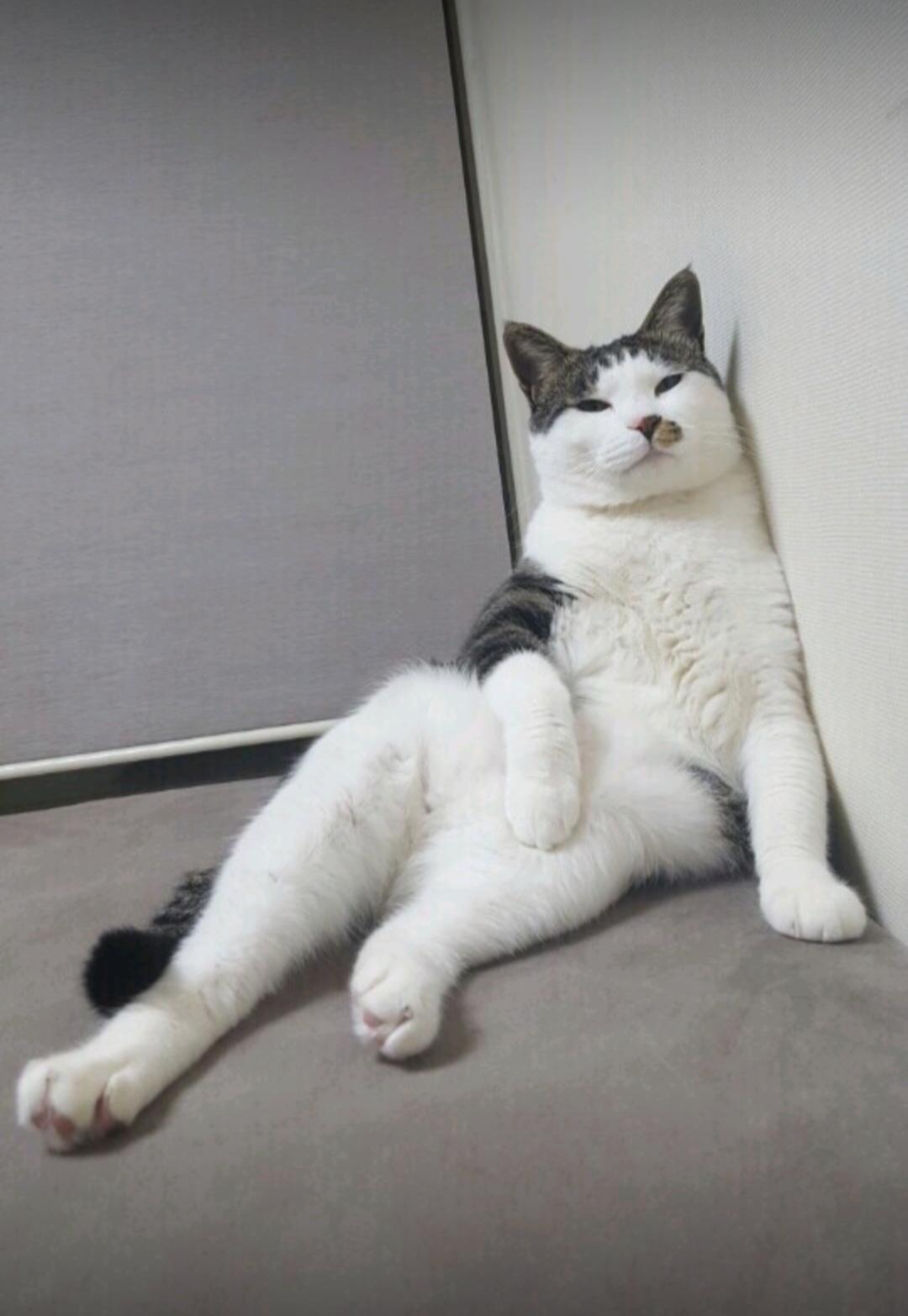 구로는 6살 고등어태비 수컷 고양이다. 아마 마구로(참치)라는 이름에서 털 색깔을 이미 유추한 사람도 있을지 모르겠다. 구로가 이런 이름을 갖게 된 것은 털 색깔 때문만은 아니다. 해체되기 전의 참치처럼 크다. 정확히는 크기도 하지만 뚱뚱하다. 태생적으로 다리도 짧아 누워 있으면 하프물범 같아 보이는 게 아주 귀여워 죽겠다. 골격은 츠동이보다 조금 작은데, 돼냥이라 츠동이보다 1키로가 더 나간다.