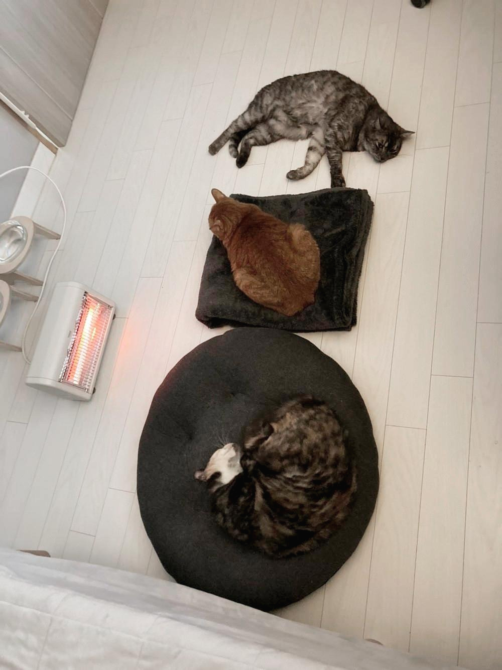 고양이도 추위를 탄다. 이제는 꽤 스산한 밤, 침대에 누우면 이 작은 털복숭이 녀석들이 모두 내 곁으로 오기 시작한다. 늘 아내와 함께 자는 츠동이와 시원한 베란다를 제일 좋아하는 구로까지 말이다. 여름에도 항상 품을 파고들던 루비는 이제 두더지처럼 거칠게 이불을 파고 들어와 안아 달라고 칭얼댄다.