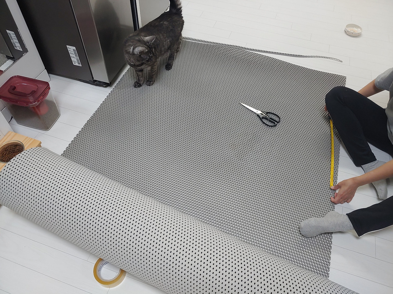 작업도 그렇게 어렵지 않다. 설치할 공간에 맞추어 길이를 재고 그대로 잘라 바닥에 살포시 깔아 주기만 하면 된다.