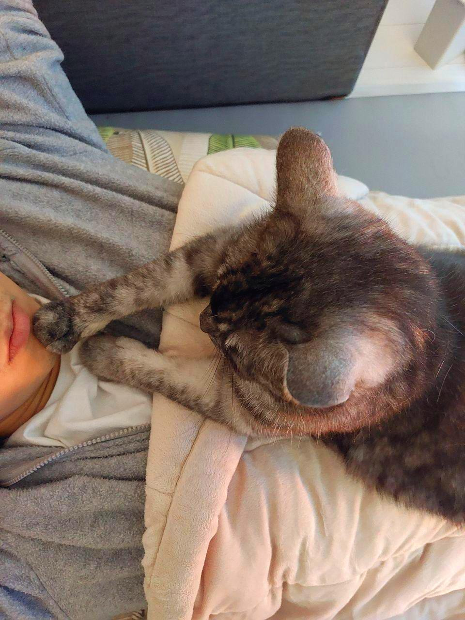 잠잘 때조차도 떨어지지 않으려는 루비 덕분에 수면의 질은 좀 떨어졌다. 그럼에도 일상의 행복은 더해진 이 아이러니를 아시려나. 쌔근거리는 숨소리와 귀여운 코골이. 몸을 뒤척일 때면 발에 느껴지는 물컹한 뱃살. 포근하고 따뜻한 털과 가끔 얼굴을 간질이는 수염. 이내 루비가 기분 좋게 갸르릉거리며 내 팔을 베개 삼아 작은 머리를 누이고는 조그만 발로 팔을 감싸 안는다. 루비는 내가 주는 사랑보다 더 많은 사랑을 내게 준다.