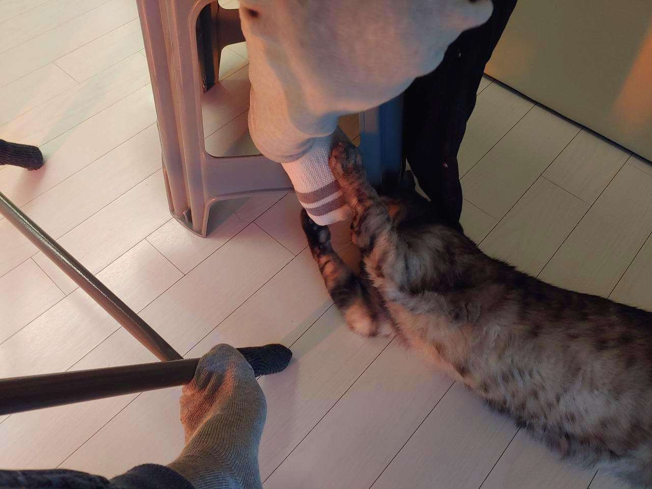 아쉽게도 제대로 된 입술 꾹꾹이는 찍지 못했다. 본격적으로 발을 올리기 전, 루비는 마치 상대의 기운을 빼기 위해 잽을 날리는 복서처럼 턱 위에 발을 올린다. 아웃복서 스타일이다.