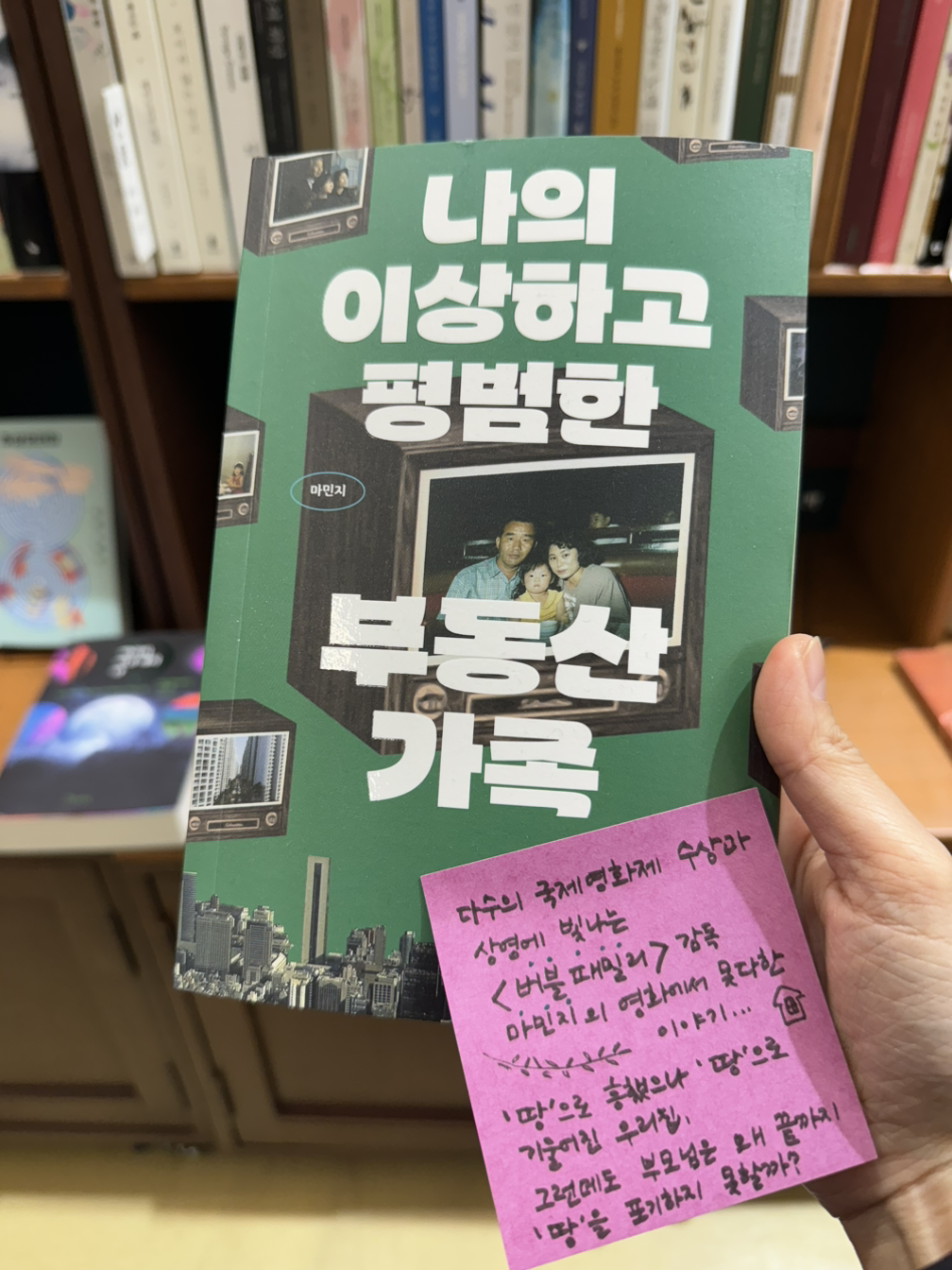 이것 저것 궁금한 것이 많아서 자꾸 책장 뒷편 사무 공간에서 일하고 계신 직원 분을 불러낸 것 같은데 바쁘신 와중에도 친절히 내 질문에 대답을 해 주셨다. 포스트잍에 글이 따뜻하게 느껴졌는데, 역시 따뜻한 분이 쓴 글은 그 글도 따뜻한가 보다. 위에 사진에서 왼쪽의 책은 집에 데려오기로 결정을 했고 오른쪽의 책은 집에 가서 '버블 패밀리'라는 영화를 봐야겠다고 생각했다. 영화를 본 후, 못다한 이야기인 저 책을 구매해 읽어 봐야겠다.
