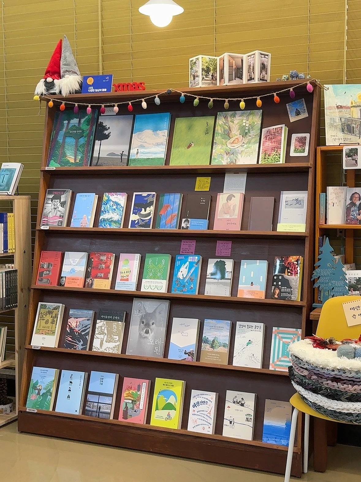 책방 내부는 아늑하고 따뜻한 느낌이 들었다. 방문 날짜가 11월 말이라 그런지 연말 분위기가 물씬 풍겼다. 커다랗고 예쁜 트리와 작은 소품들이 크리스마스와 함께 연말이 다가 왔음을 알려 주고 있었다.