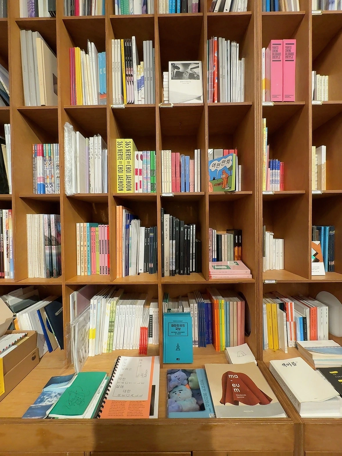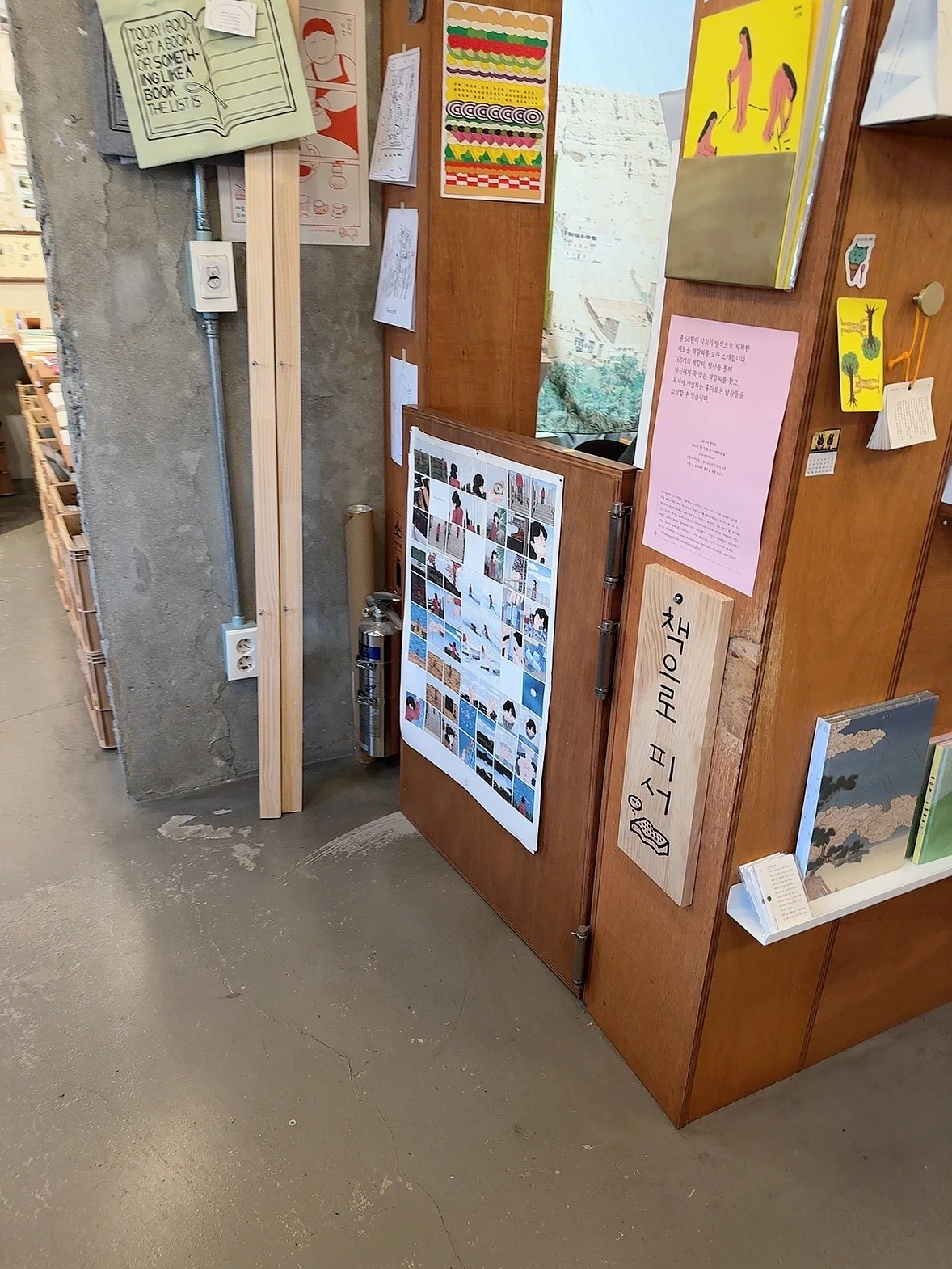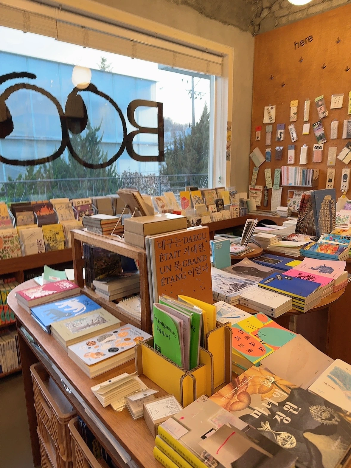 이 유어마인드야 말로 딱 내가 생각한 이미지의 독립 서점이었다. 작지만 알차고, 차분한 분위기 속에서도 날 것의 느낌이 있는? 책 종류 또한 교보문고의 매대에서는 눈에 띄지 않을 법한 책들이 나열되어 있고 각종 굿즈들이 이목을 끄는 책방. 들어서는 순간, 살짝쿵 가슴이 뛰고 텐션이 업 되는 것이 느껴졌다. 음료를 마실 수 있거나, 앉아서 책을 읽을 수 있는 공간은 없었다. 맘에 드는 책 앞에 서서 잠시 책을 읽어 보고, 예쁜 표지들의 책도 구경해 보며 한참을 둘러본 것 같다. 마음에 드는 책을 금방 골랐기에 책을 옆구리에 끼고는 책방 구석구석을 돌아보다, 이제 밥이나 먹으러 가볼까 하고 계산대에 가려던 그 순간! 눈에 책 한 권이 꽂혔다.