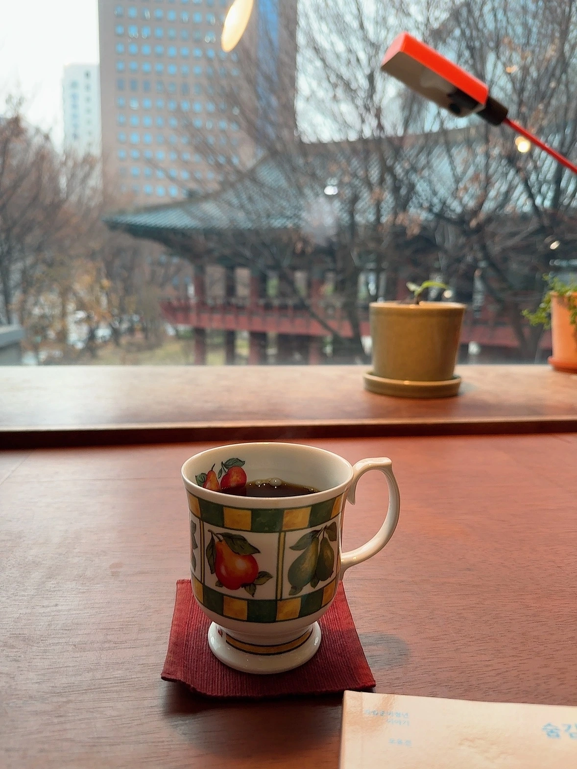 커피는 드립 커피로 주문했는데, 뒤에 사람들이 줄 서 있어 고민을 많이 못 하고 주문했다. 그래서 내가 뭘 주문했는지 기억이... 안 난다. 내가 주문한 커피는 산미가 조금 있는 있었다. 나는 산미가 있는 커피도 좋아하는 편이라 향도 맛도 너무 좋았다. 다만 이 추운 겨울에 뜨거운 커피가 금방 식어가는 것이 아쉬울 따름이었다. 다음에는 퇴근하고 꼭 한 번 다시 들러야겠다고 생각했다. 반정도 읽은 책을 가져갔는데 집중이 너무도 잘 돼서 1시간 동안 끝까지 다 읽고 나올 수 있었다. 사장님도 친절하셨고, 다음엔 손님이 적은 시간대에 가서 내가 무슨 커피를 주문했는지 커피는 어떤 맛이었는지도 기억하고 와야겠다. 오랜만에 마음에 쏙 드는 공간을 찾은 것 같다.