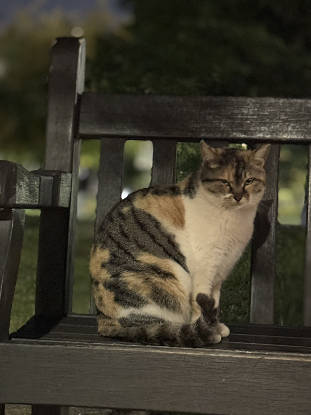 한 남매분들이 앉아계셨는데, 고양이가 갑자기 벤치 위에 쓱 올라앉더니 그렇게 자리를 빼앗아 버렸다.