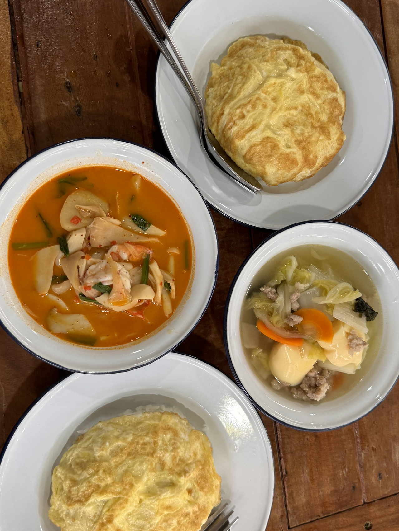 우리가 앞으로 자주 드나들 큰길로 나가면 몇몇의 식당과 편의점, 마사지샵이 있다. 하지만 우연히 로컬 맛집을 찾다가 가보게 된 뒷골목은 정말 태국 현지인들이 대부분이었고 외국인은 거의 없었다. 로컬 시장에는 과일이나 길거리 음식들을 팔고 있었고 내가 방문한 식당도 태국 현지인들이 주 고객인 듯했다.