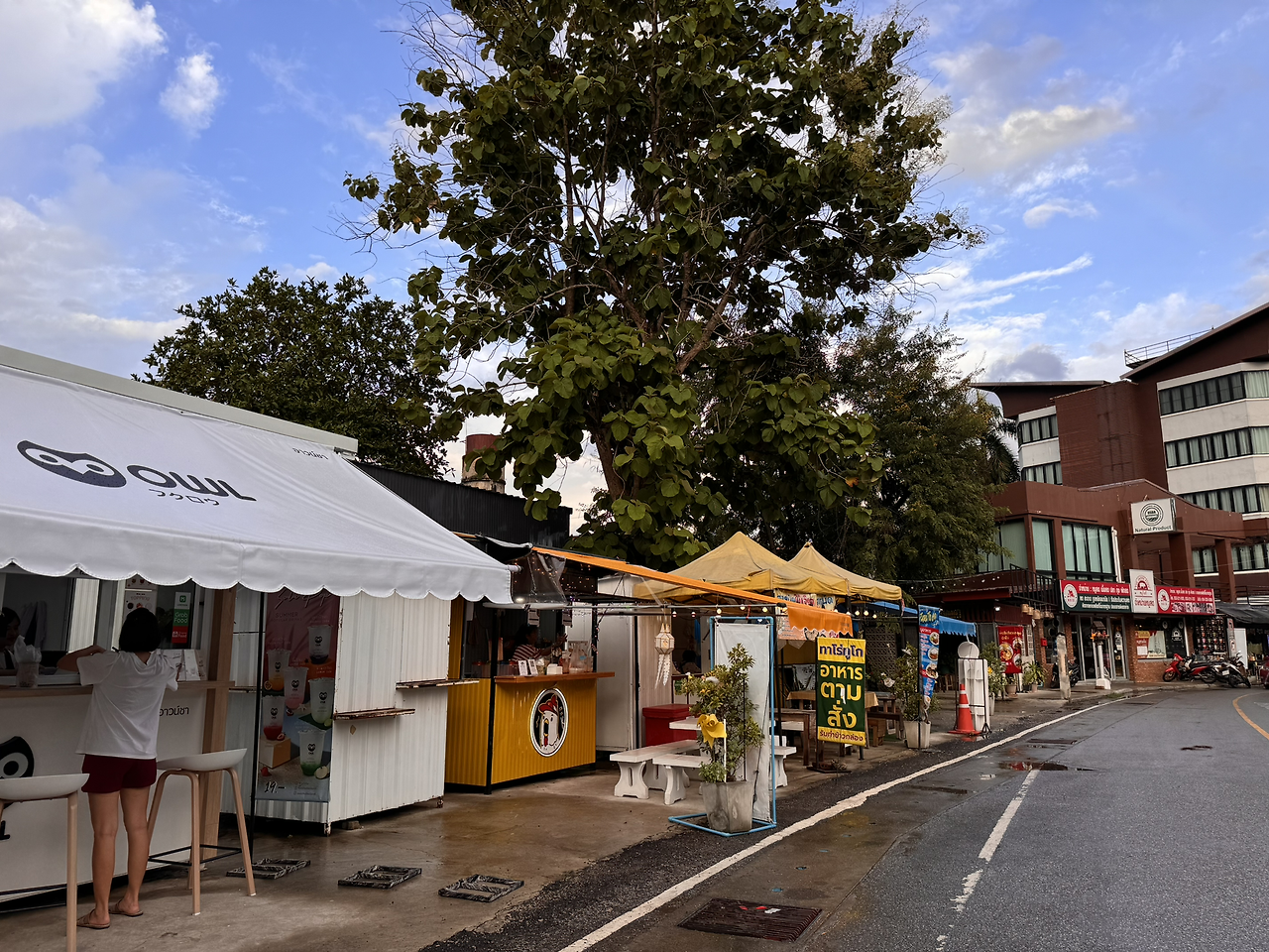 식당은 진짜 맛집이 맞았다. 똠양꿍을 마치 해장하듯 흡입했다. 사장님도 친절하고 위에 사진처럼 저 거리의 가게들만 새로 리모델링을 했는지 깨끗했고 새것의 느낌이 낭랑했다. 식사를 마치고 버블티를 하나 사서 숙소로 돌아왔다. 버블티의 가격은 24밧. 약 900원. 상당히 만족스러운 저녁 시간이었다.