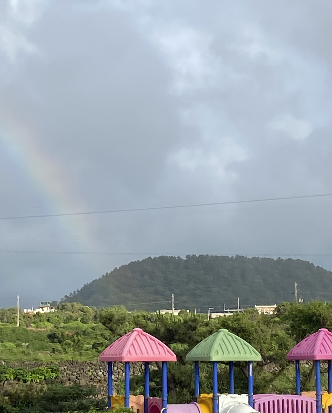 렌트하고 밥 먹으러 향하던 중 만난 무지개. 사진으로 다 담기지 않아 속상하다. 예쁜 무지개 덕분에 우리 가족 모두 기분이 업됐다! 벌써 좋은 추억 하나 생긴 것 같아 흐뭇했다. 가는 길 내내 제주도스러운 풍경을 즐길 수 있어서 너무 좋았는데 영상을 올릴 수 없어 많이 아쉽다.