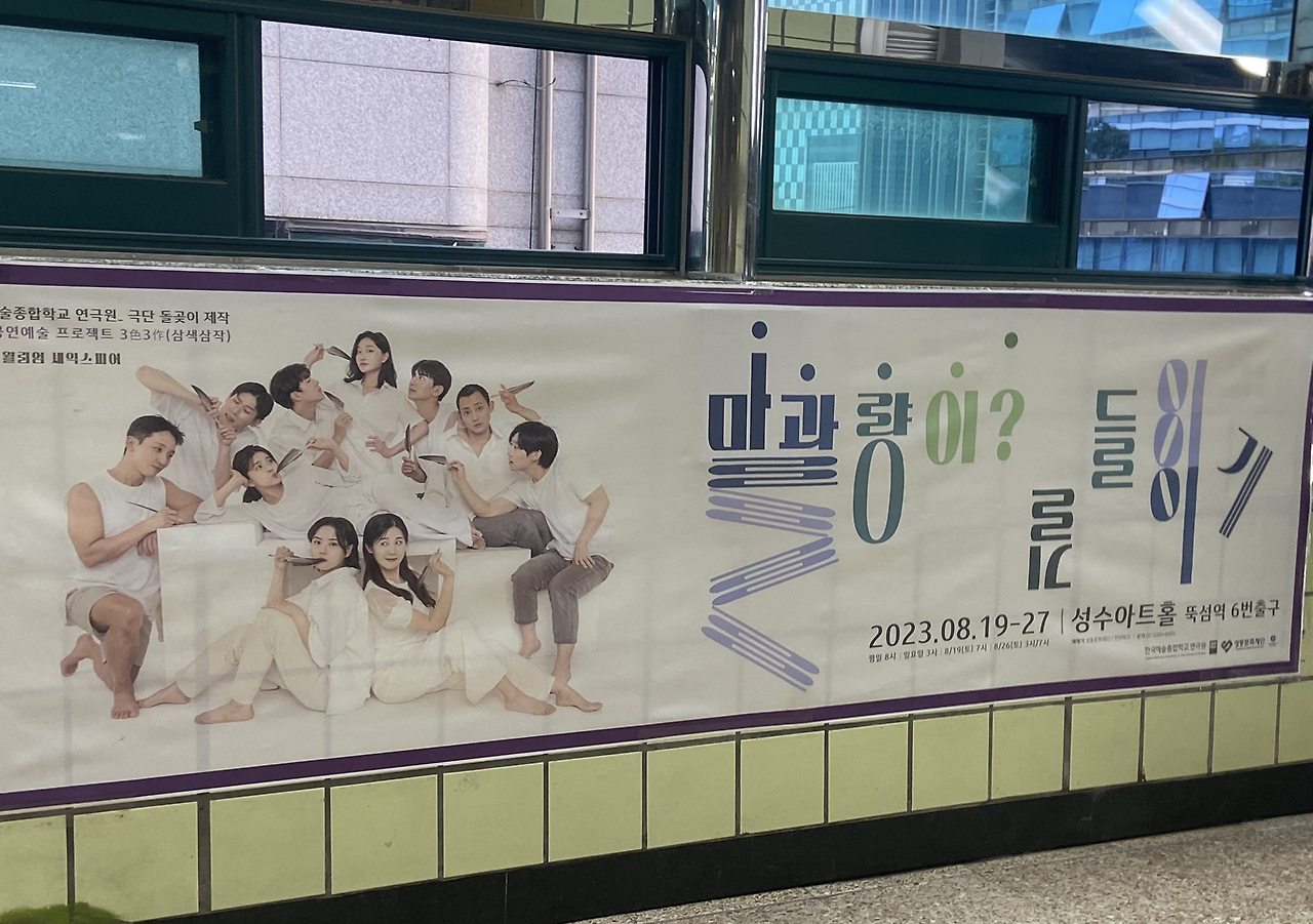 하지만 마음을 단단히 먹어야 했다. 각각 홍대와 성수에서 공연이 있었고, 우리는 둘 다 경기도에 거주 중이고 성수는 집에서 거리가 조금 있는 편이었다. 하루에 연극 두 개를 관람하는 일은 솔직히 조금 고단할 수 있는 일이지만, 우리 둘은 어릴 적 연기에 대한 열정이 가득했던 그때를 떠올리며 걱정보다는 기대가 앞섰다.