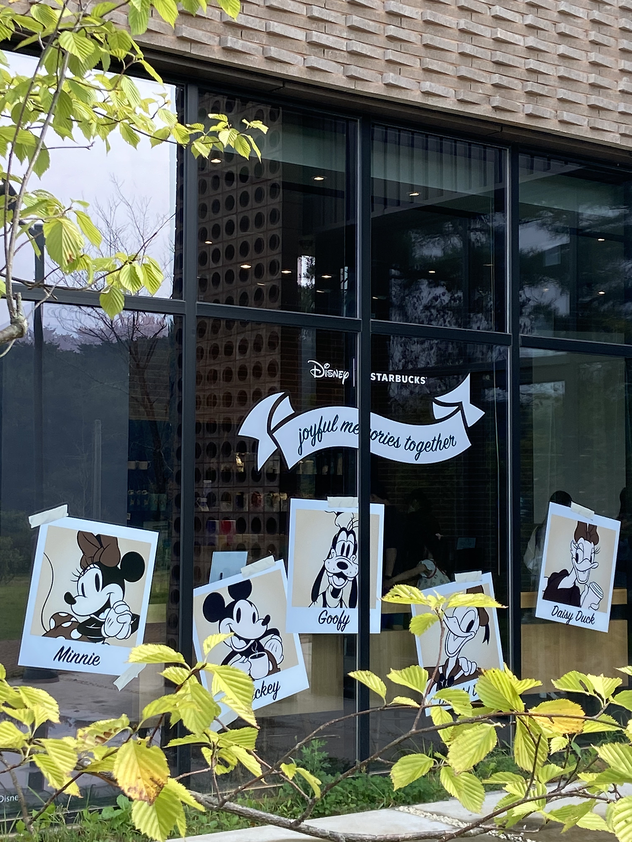 지금 스타벅스는 디즈니와 콜라보 중으로 디즈니 굿즈와 음료, 푸드 등을 판매하고 있다. 중간중간 귀여운 디즈니 인테리어와 장식들이 눈에 띈다.