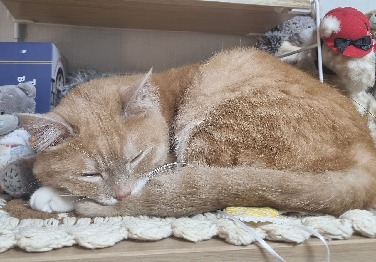 작은 소리에 움찔거리는 귀, 정수리부터 목덜미까지 털을 쓸어내리면 꿈에서 무언갈 먹고 있는지 쫍쫍 소리를 내는 조그마한 입, 노랗고 하얀 털이 섞여 보드랍기만한 솜이의 배. 잠자는 천사, 그런 표현보단 천사가 편안히 잠든 시간이라 표현하면 어떨까. 걱정 없이, 두려운 것 없이, 조급한 것도 없이 바닥에 평행선처럼 함께 누운 시간. 솜이의 숨소리에 맞춰 차분해지는 나의 정신.