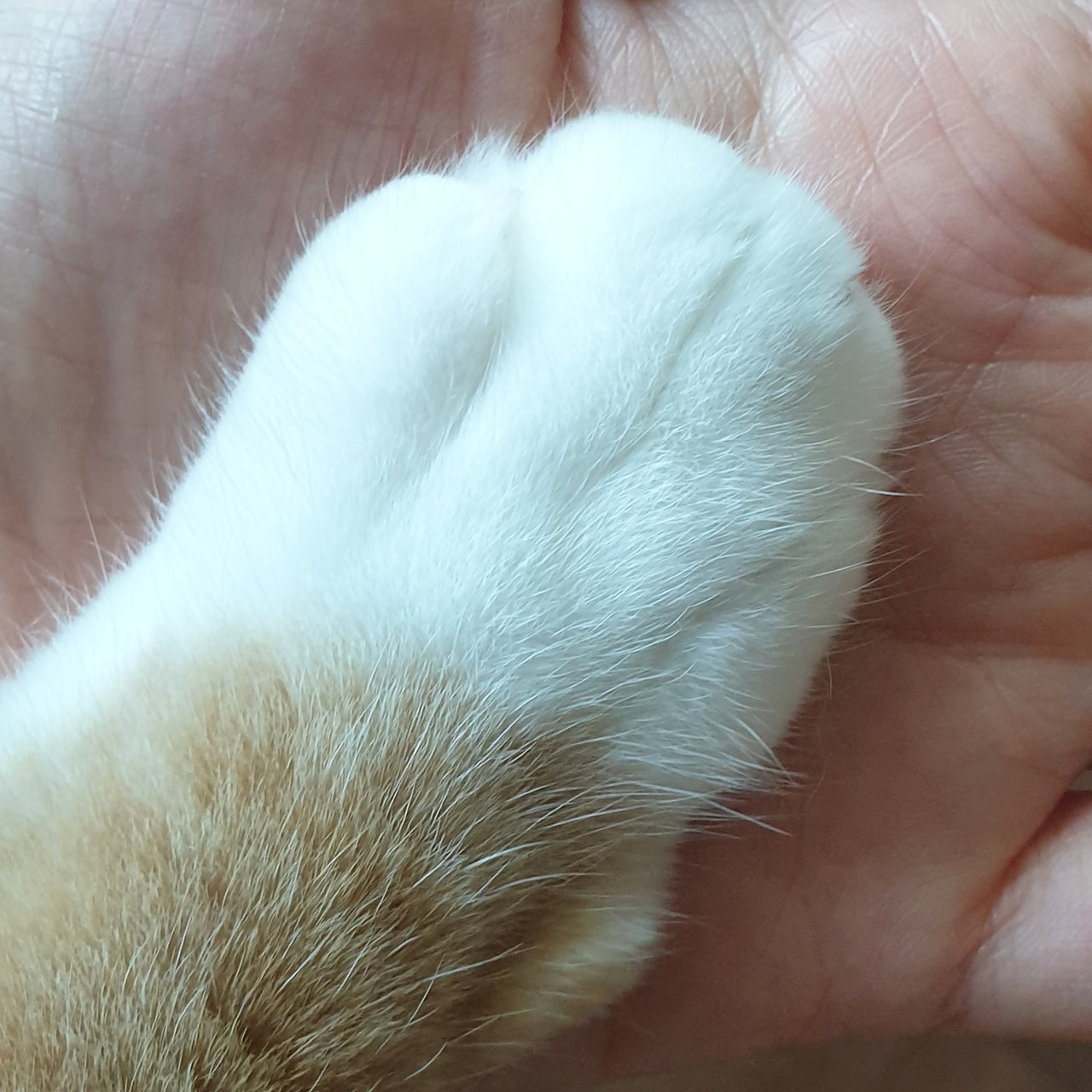 유자는 내가 외출하는 것을 아는 것 같다. 나갈 때만 되면 나를 쫓아다니거나 굳이 다리에 앉아있겠다고 떼를 쓴다. 유자가 내 다리에 앉아 쉴 때면 무릇 집사들이 그렇듯 얼굴 찐빵 만들기, 토끼귀 만들기, 털 거꾸로 쓸어내리기 등의 행동을 하는데도 유자는 자리를 지킨다. 유자랑 노는 아침 시간이 길어질수록 나약한 마음이 들어 집을 나서기가 힘들어진다. 그래서 유자는 허락하지 않았지만 유자 손 사진을 한 장 찍어서 배경화면으로 설정해놓았다.