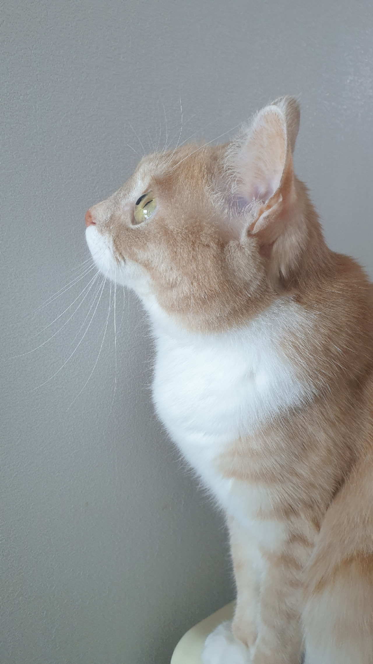 최근 알게 된 사실인데 귀신을 보는 것은 아니고, (그럴 수도 있겠지만...) 허공의 먼지를 보는 것이거나 그쪽에서 들려오는 아주 작은 소리에 귀를 기울이고 있는 것이라고 한다. 고양이의 청력은 아주 좋다. 노랫소리와 TV 소리로 가득 찬 인간 세상과는 다르다. 아주 작은 새끼 집거미 한 마리가 지나가는 것도 용케 알아듣고는 마중을 나가 있는 솜이와 유자이다.