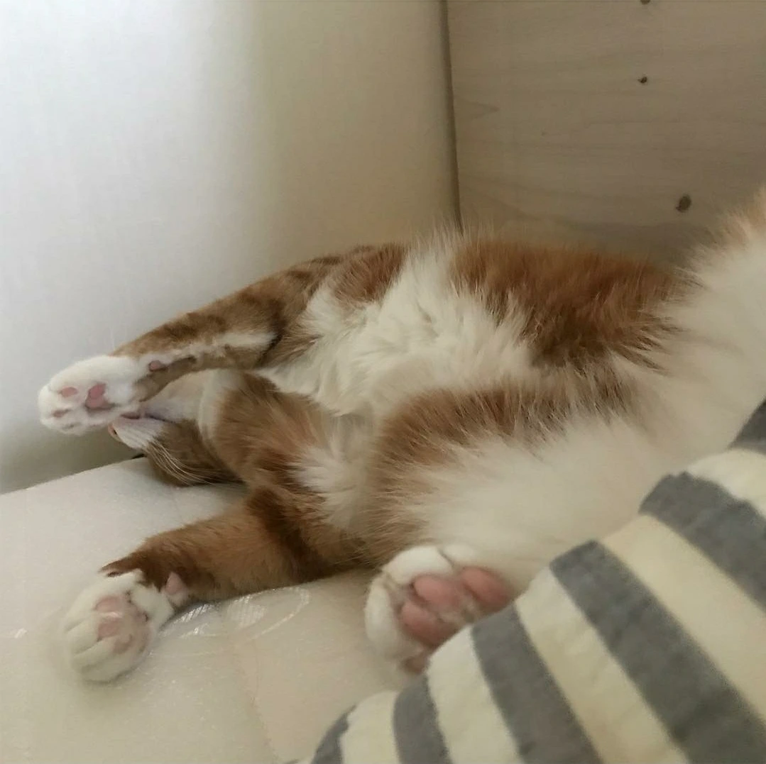 유자는 가끔 내 베개에서 잠을 자기도 하고, 발치에서 자기도 하고 다리 사이에서 자기도 하고 아무데서나 잘 잔다. 솜이처럼 예쁘게 똬리를 틀고 자는 것도 아니다. 행위예술을 하는 것 마냥 잔다. 고양이에게 가장 연약한 부위라는 배를 이렇게 드러내 놓고, 눈도 제대로 감지 못하고 아무렇게나 자는 유자를 보면 내가 있는 이 공간이 얼마나 평화로운 곳인지를 느끼게 된다.