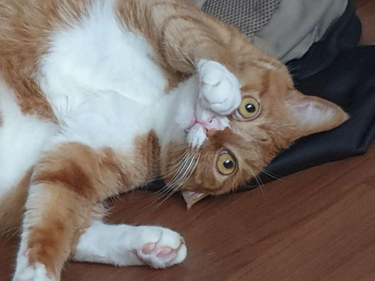 꾸애앵하고 말을 한 이후에도 다리를 안 펴주면 나부끼는 가을 낙엽마냥 주변을 나뒹구는 고양이를 근처에서 발견할 수 있다.