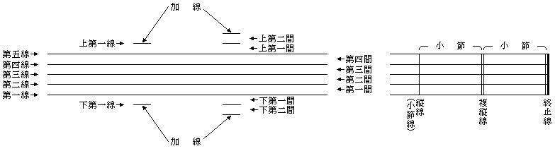 글자 그대로 다섯 개의 선(五線)으로 이루어져 있으며,
