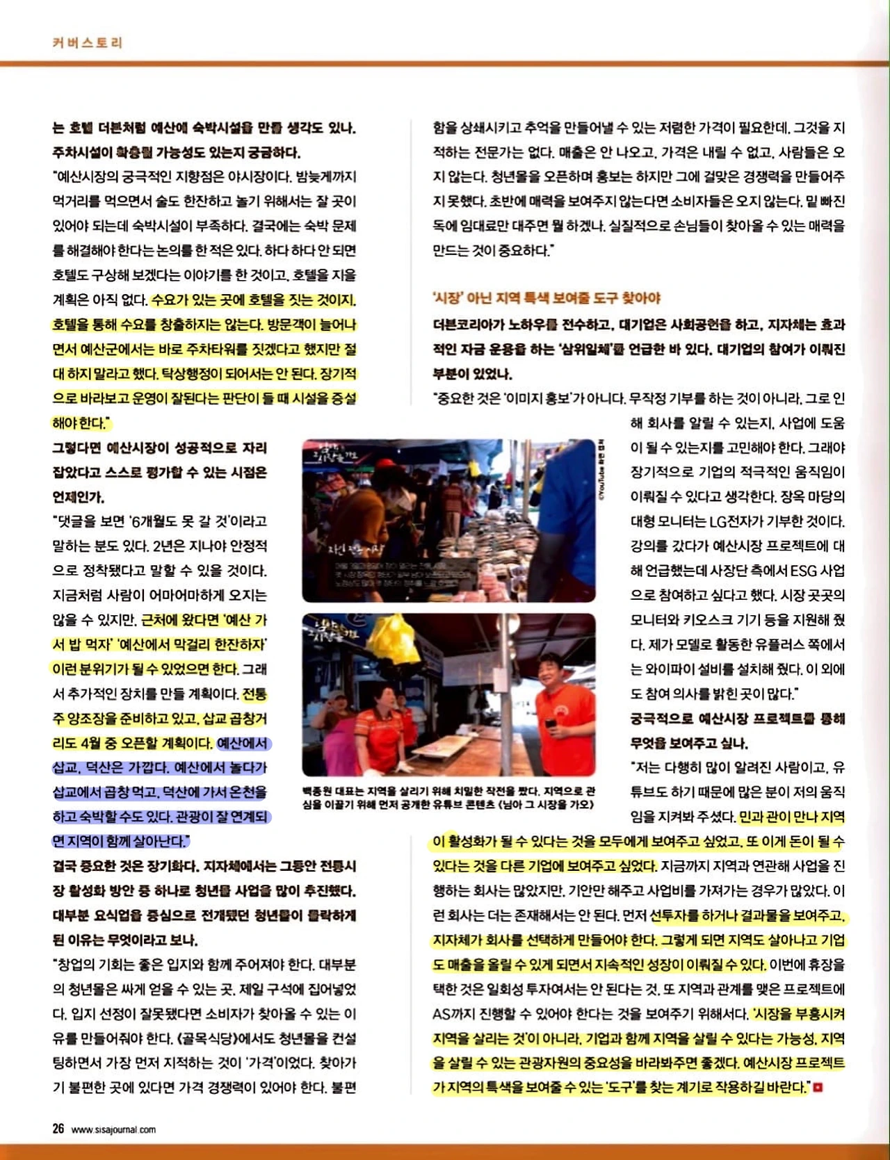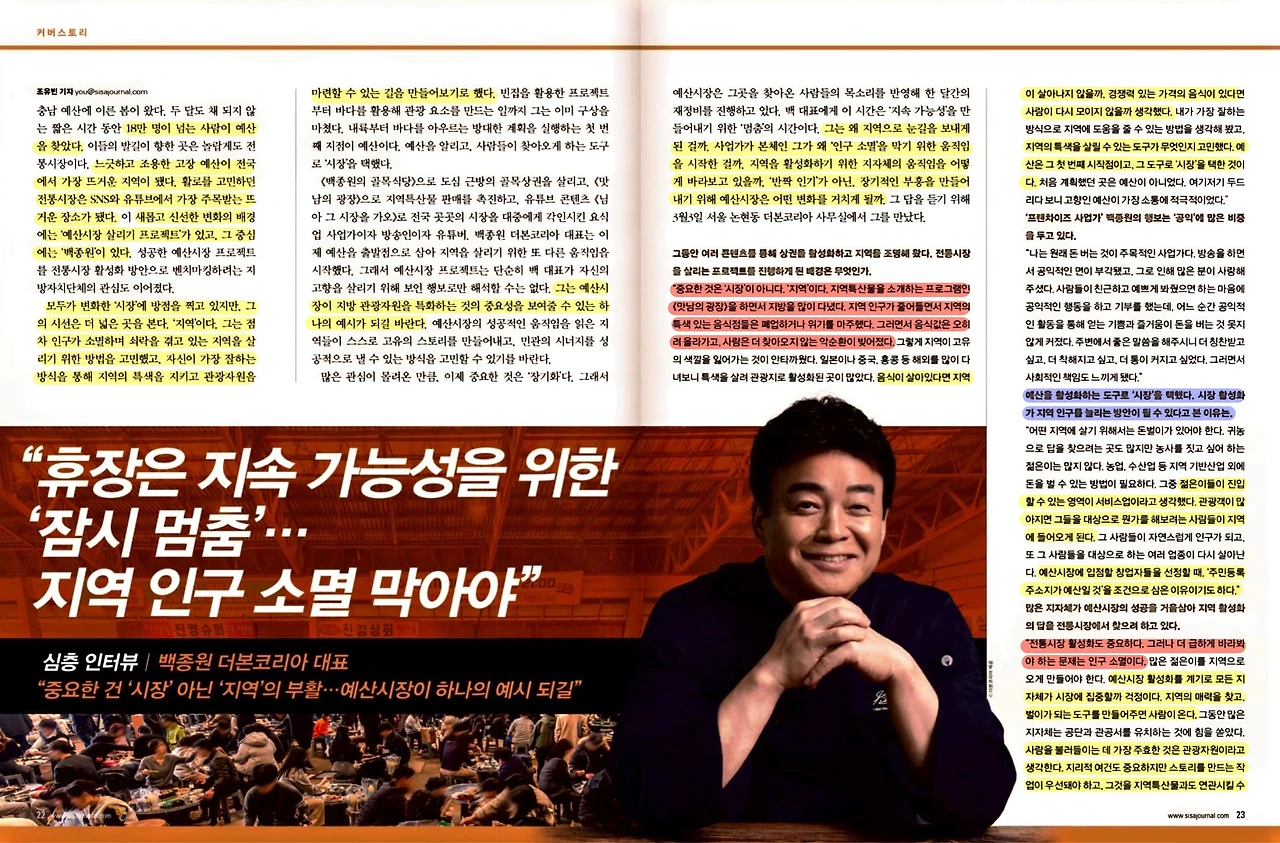 [시사저널] 조유빈 기자_“중요한 건 ‘시장’ 아닌 ‘지역’의 부활. 예산시장이 하나의 예시되길”