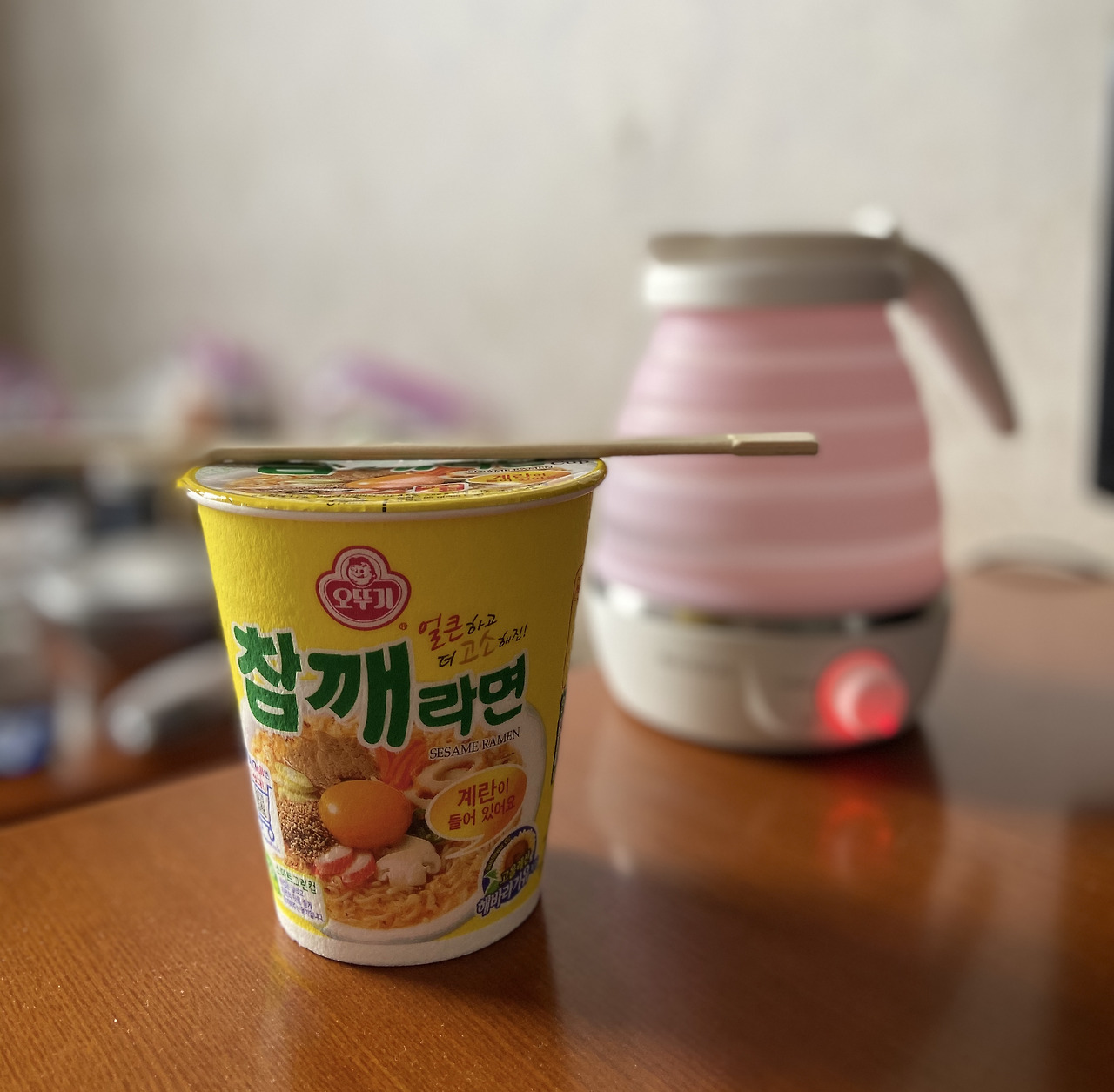 중국에서 14년 이상을 살았으니 중국 음식은 잘 먹는 편이다. 아이들도 맵거나 지나치게 짜지만 않으면 잘 먹는 편이다. 미리 격리한 분이 귀띔해줘 돗자리를 가져왔기에 돗자리 위에서 난민처럼, 또는 소풍 온 것처럼 그렇게 먹는다. 한국에서 가져온 컵라면을 간식으로 먹고, 가져온 전기포트로 물을 끓여 커피 한 잔 하면 그런대로 격리 식생활도 버틸 수 있을 듯하다.