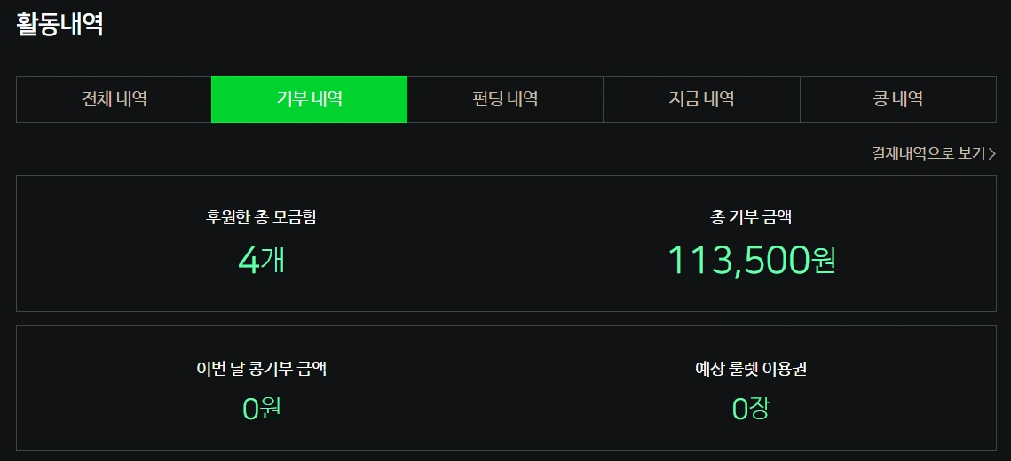 어느 정도 모으면 기부하곤 했는데 조회해서 보니 12만 원 정도 기부했다.