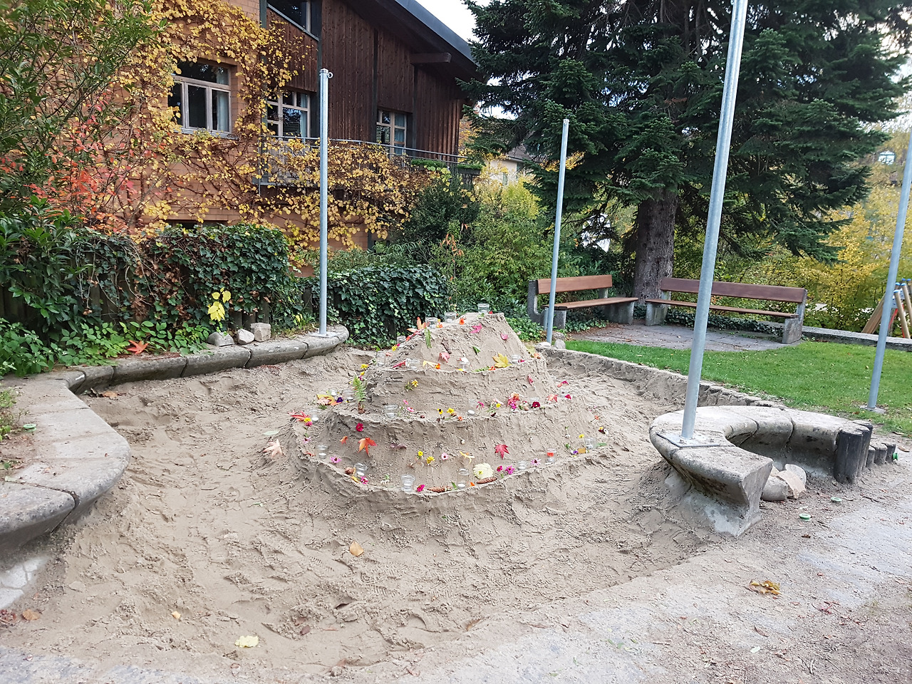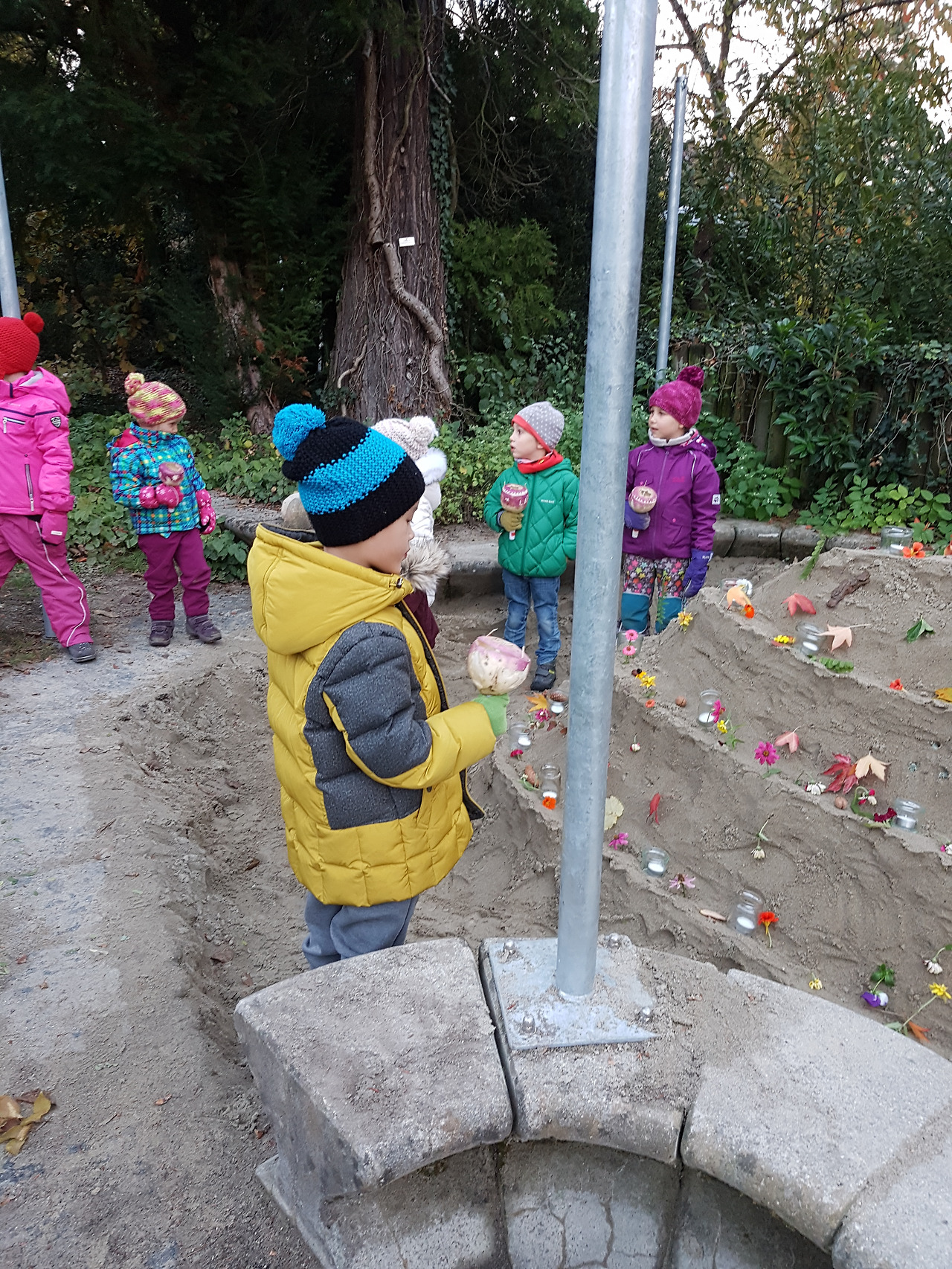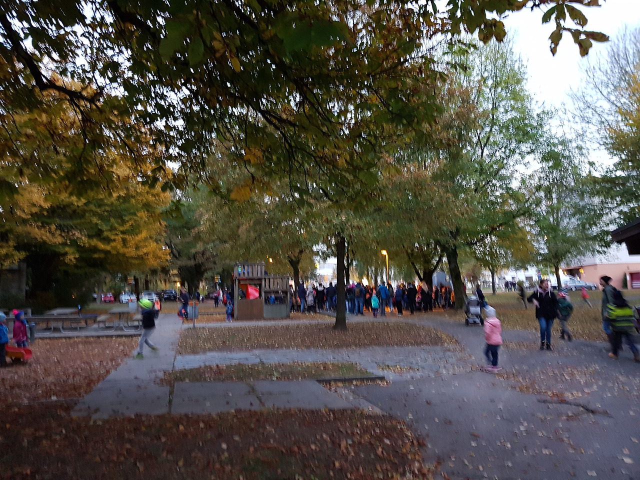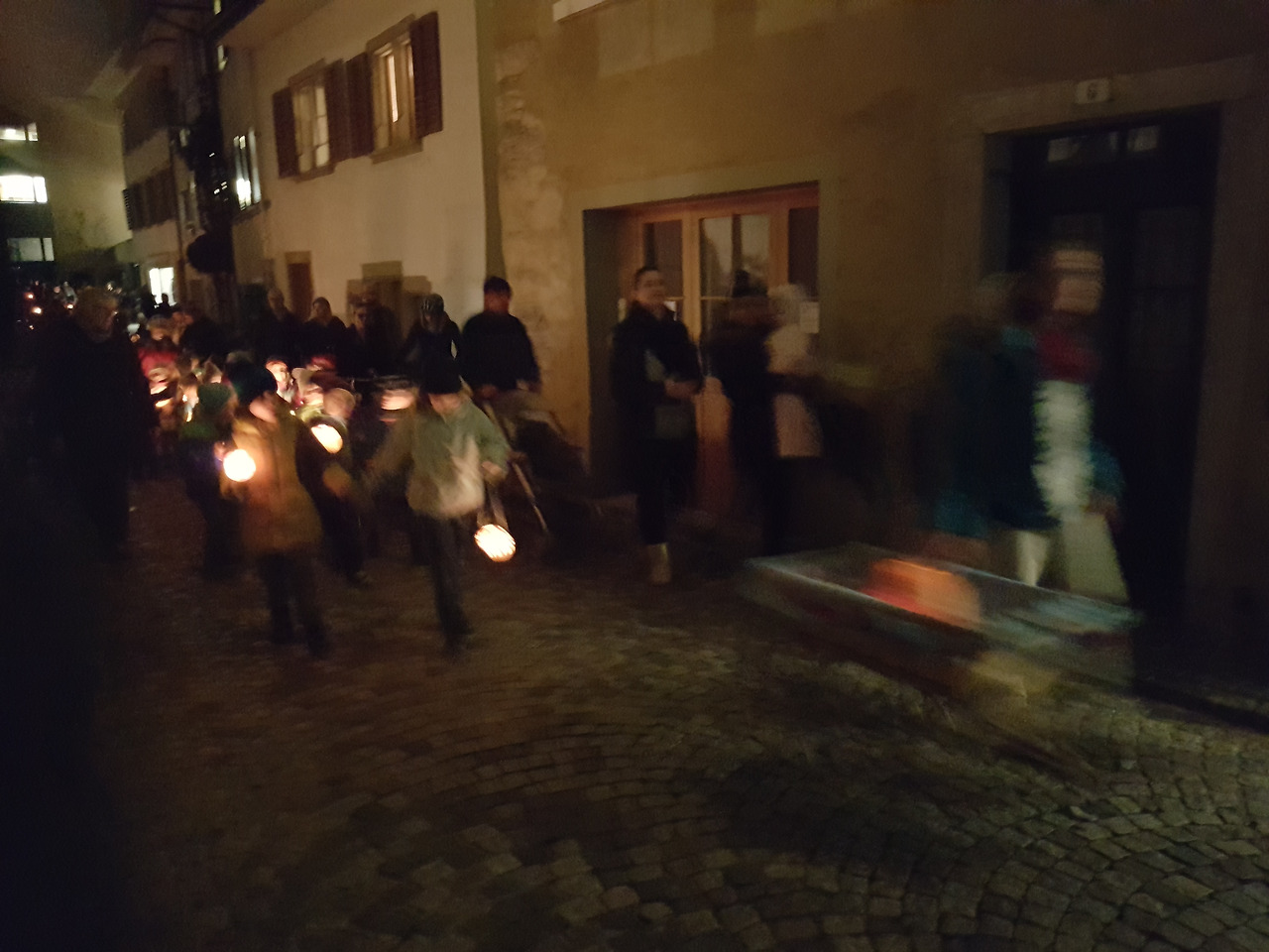 해질 무렵에 시작된 행진은 그렇게 놀이터, 익숙한 학교가는 길, 학교 뒤의 숲길, 마을의 구 시가지 쪽으로 이어지다가 예전에 소금창고였던 곳의 뒷편 광장에서 끝이 난다. 그곳에서 아이들은 최근 몇주동안 유치원에서 배운 노래들을 부르며 이 작은 축제는 절정에 다른다.