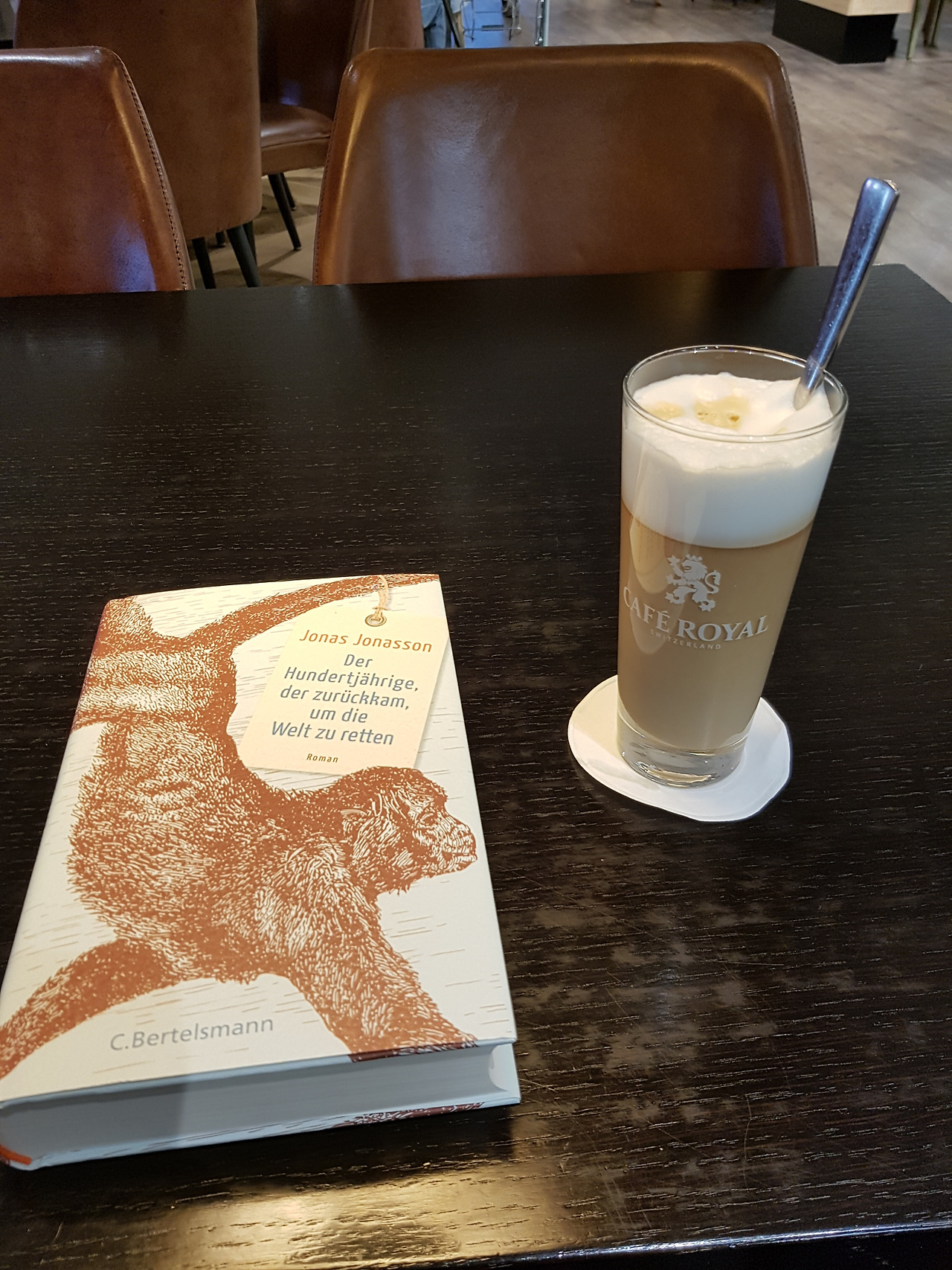 참관하는 동안 생각했던 것도 정리한다는 핑계로 부리나케 나갔다. 혼자만의 한 시간!! 이건 황금같은 기회이기 때문에 절대로 만끽해야만 했다. 후다닥 나가서 서점에서 책 한 권을 골랐다. Der Hundertjährige, der zurückkam, um die Welt ze retten(세상을 구하려고 돌아온 100세 노인). 제목과 작가 Jonas Jonasson 을 곱씹어 보니 어, 이거 읽고 싶었던 책인데(사실은 한국어로, 한국어 제목은 창문 넘어 도망친 100세 노인이다.) 독일어지만 이게 어디냐 싶어서 냉큼 집었다.