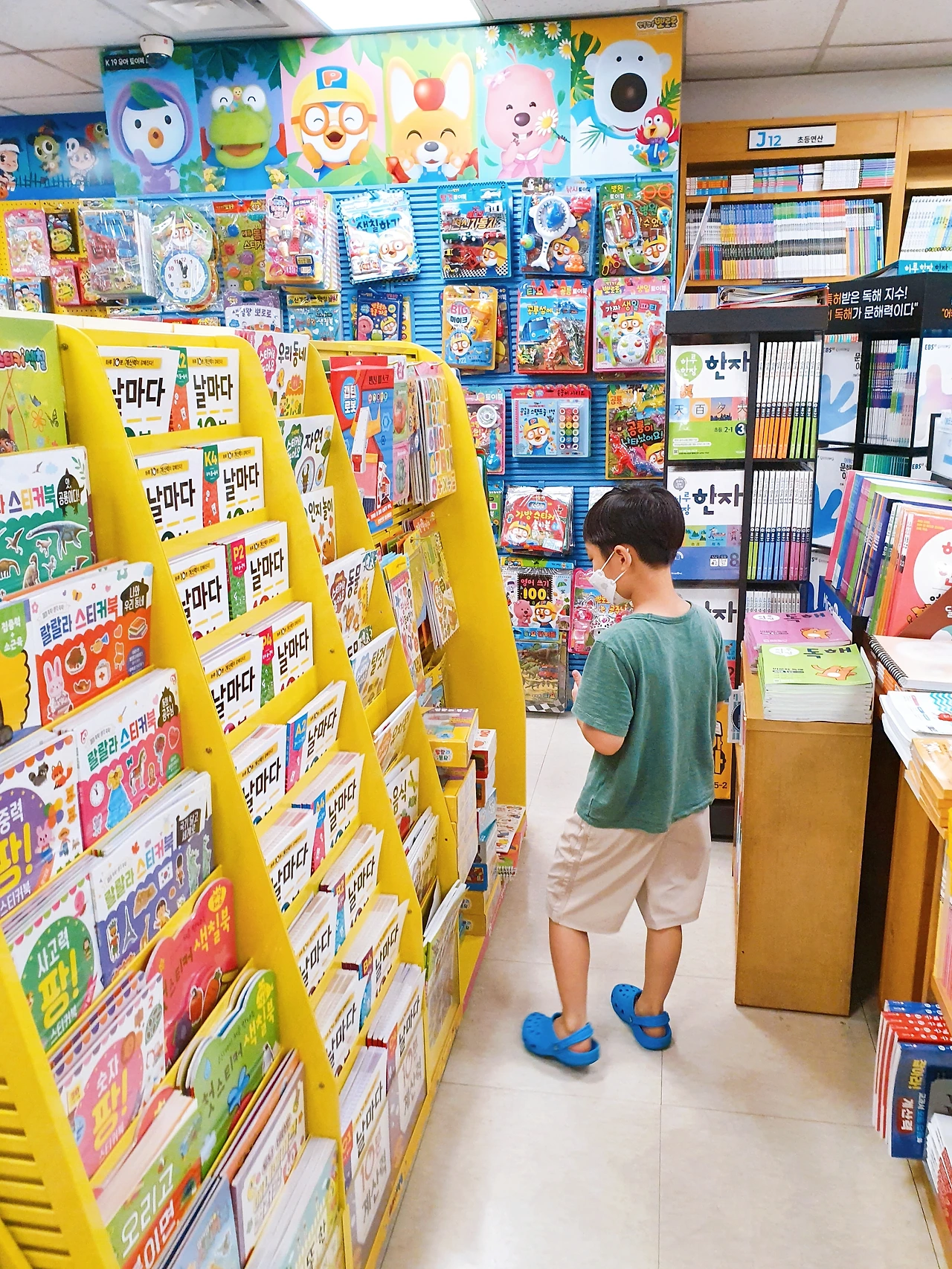 아쉬운 듯 사뿐히 책을 제자리에 갖다 놓고도 계속 두고 온 '포코(타요 만화에 나오는 포크레인)'에 미련이 남은 상윤이는 마치 포코와 안 보이는 고무줄이 연결된 것처럼 멀어졌다가도 가까워지고 떠났다가도 돌아오고 그 자리를 벗어나지 못했다. 결국 상윤이가 고른 스티커 모자이크 북 2권과 자동차 책 한 권, 상우 선물로 포켓몬스터 활동북을 사고서야 서점을 나올 수 있었다.