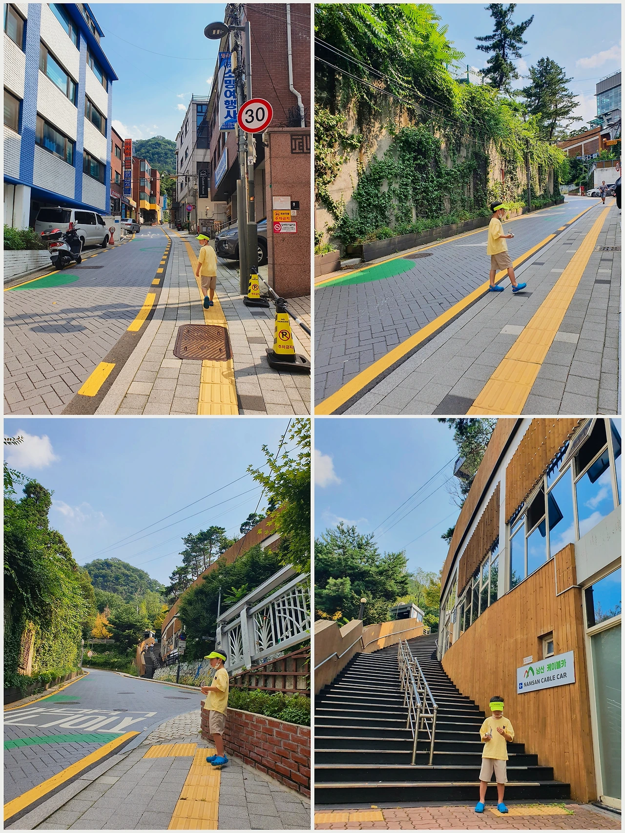 탈출 미션 같았던 명동역을 빠져나와 남산 케이블카까지 올라가는 길은 좀 전과는 전혀 다른 분위기를 풍긴다. 제법 걸을 맛 나는 운치 있는 오르막길은 그냥 걷기만 해도 화보 같았다. '운동화 신겨 올걸.' 사진 속 상윤이의 파란색 크록스가 마냥 아쉽다. '담쟁이덩굴이 집 담벼락을 덮으면 그 집 기운이 안 좋아진대. 저기 저 담쟁이덩굴 집주인이 큰 병에 걸렸다더라.' 제주에서 친정엄마가 했던 말를 떠올리면서 담쟁이덩굴로 뒤덮여 길게 이어진 벽을 따라갔다. 저 건물의 주인은 어떨지 모르겠지만 보는 이에겐 묘하고 신비한 분위기를 자아내 동화 속 환상을 꿈꾸게 했다.