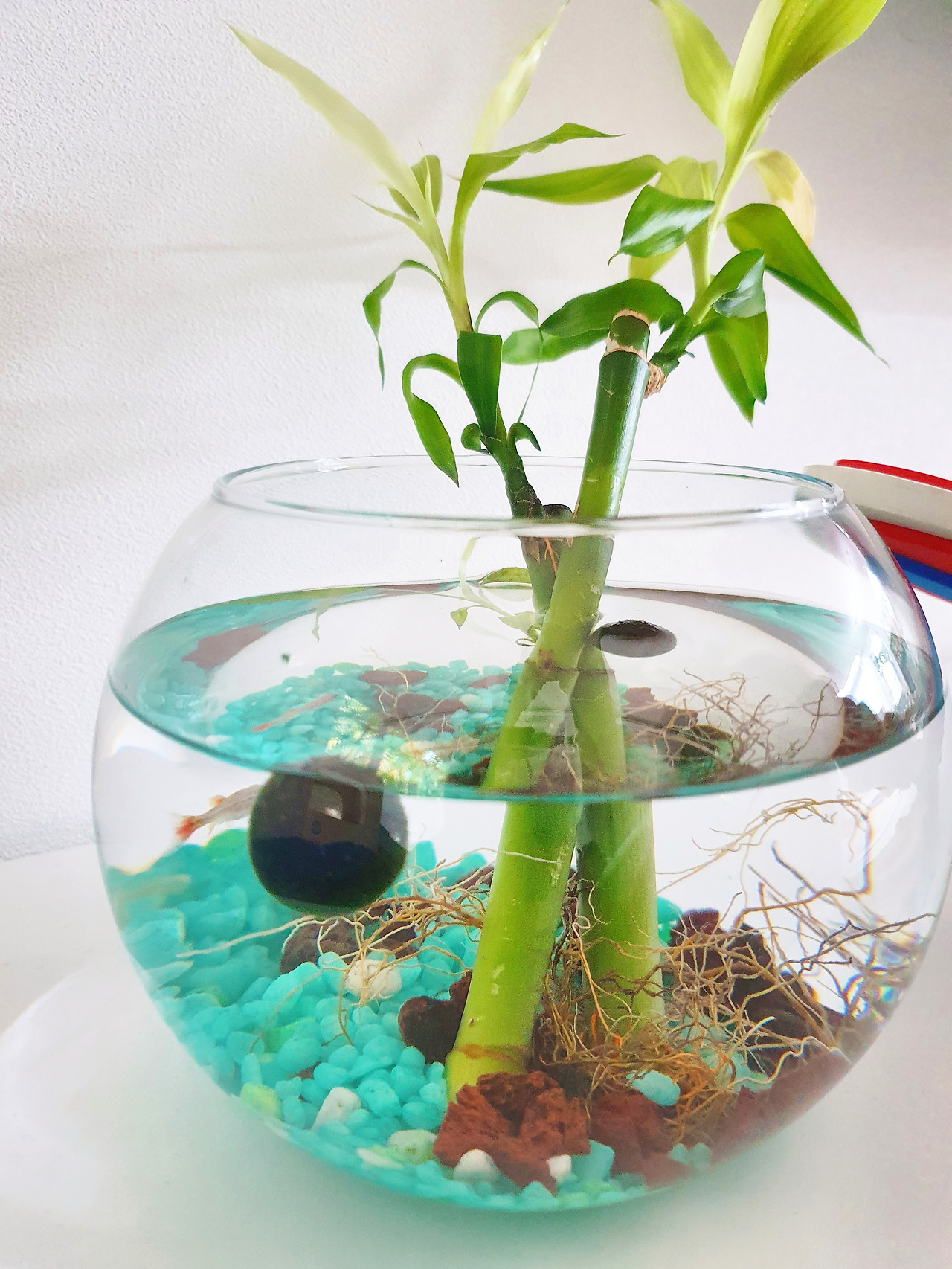 그리고 깨끗한 물을 채운 어항에 마리모를 넣어주었더니,