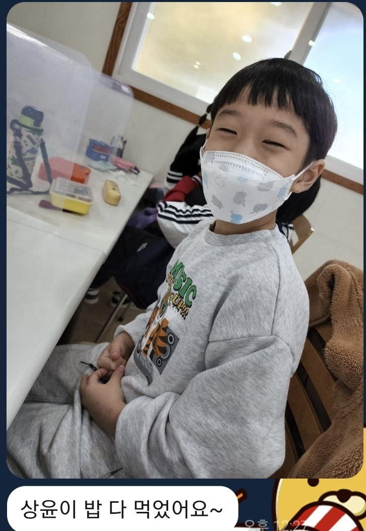 '어머니 상윤이가 도시락을 거의 안 먹었어요. 평소에 잘 먹는 걸로 싸주시면 좋을 것 같아요.'