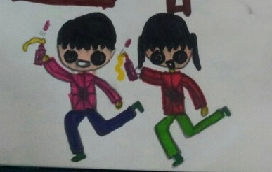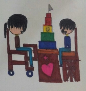 자세히 보면 이 둘은 나머지 두 아이들과 다릅니다. 아이들의 머리 모양과 옷을 보면 아마도 친구들인 것 같습니다. 이 친구들은 새롭게 만나는 여자와 남자의 만남을 축하해주는 모습을 표현하는 것 같습니다.