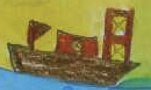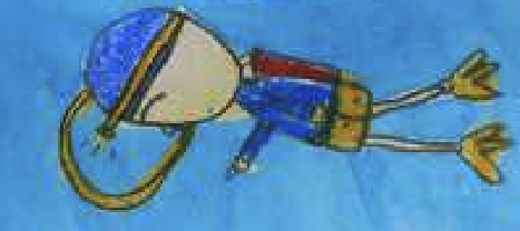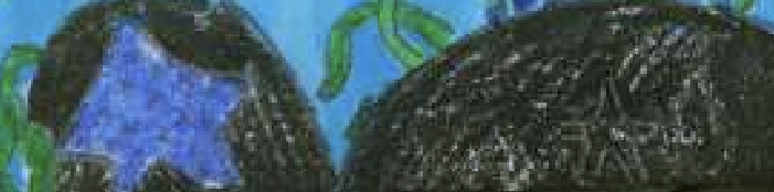 모두 왼쪽을 보고 있어 바닷물의 흐름, 즉 조류의 방향이 오른쪽에서 왼쪽으로 흐르는 것을 표현하기도 했고요. 바닷속을 표현한 것이 마치 사람과 물고기들이 하늘을 날아다니는 것 같은 모습을 하고 있어요.